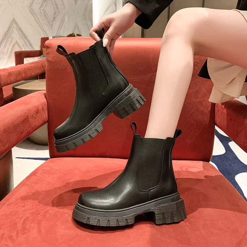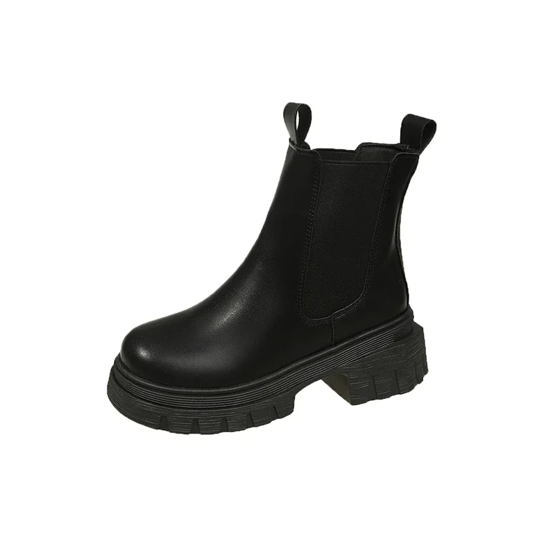 Autumn and Winter New Round Toe Low Heel Women's Boots Chelsea Motorcycle Boots Solid Color Breathable Casual Women's Boots
