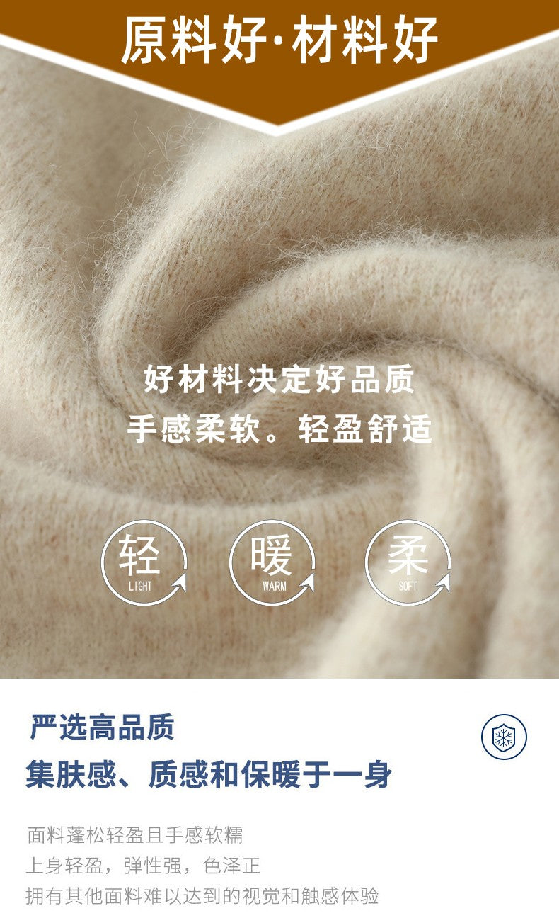 Autumn And Winter New Warm Pure Mink Cashmere Sweater Men's V-neck Pullover Thickened Plus Size Knitted Bottoming Shirt