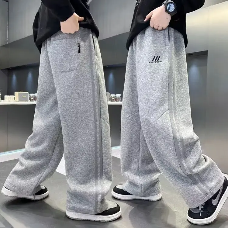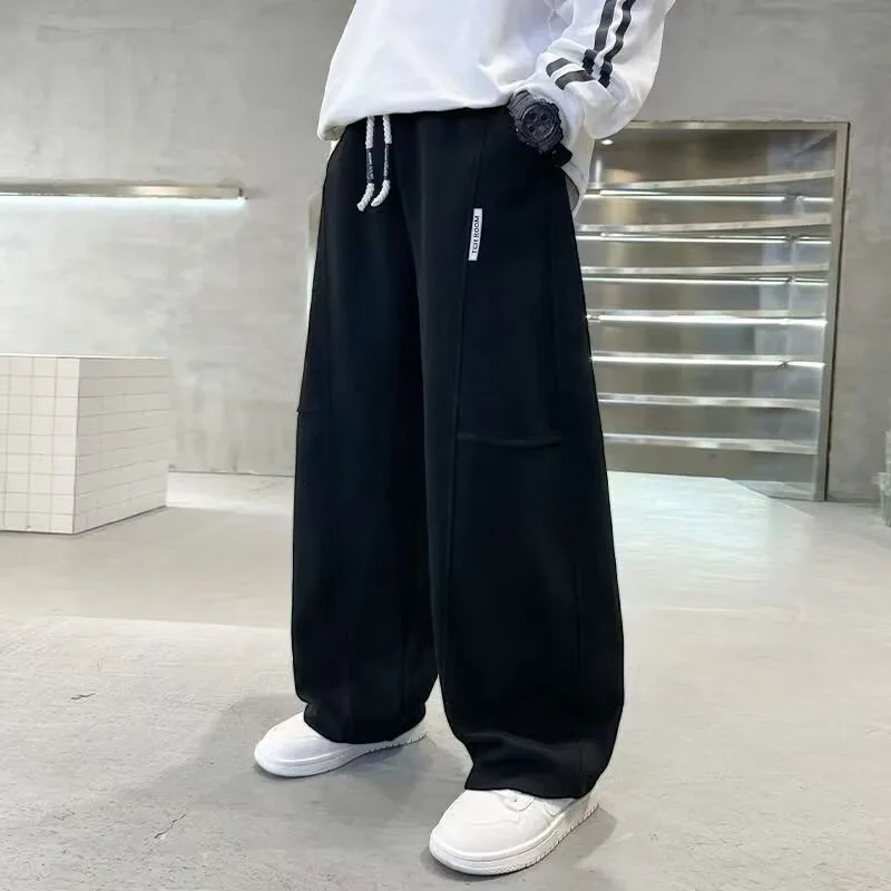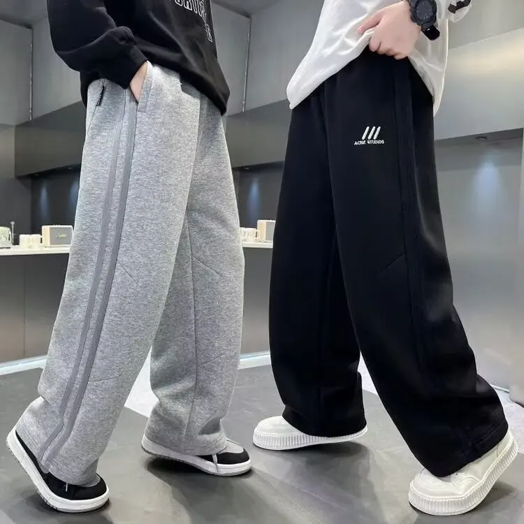 Autumn Boys Causal Pants Kids Loose Cotton Sports Pants 110-170 Black Grey Soft Trousers for Children Spring Kids Clothing 2025