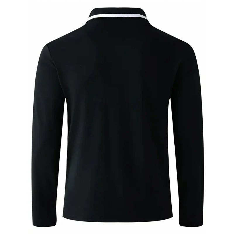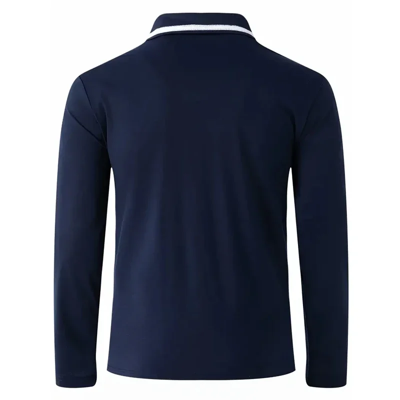 Autumn men's casual long sleeved polo shirt with pockets, fashionable street trend, regular solid color elastic breathable