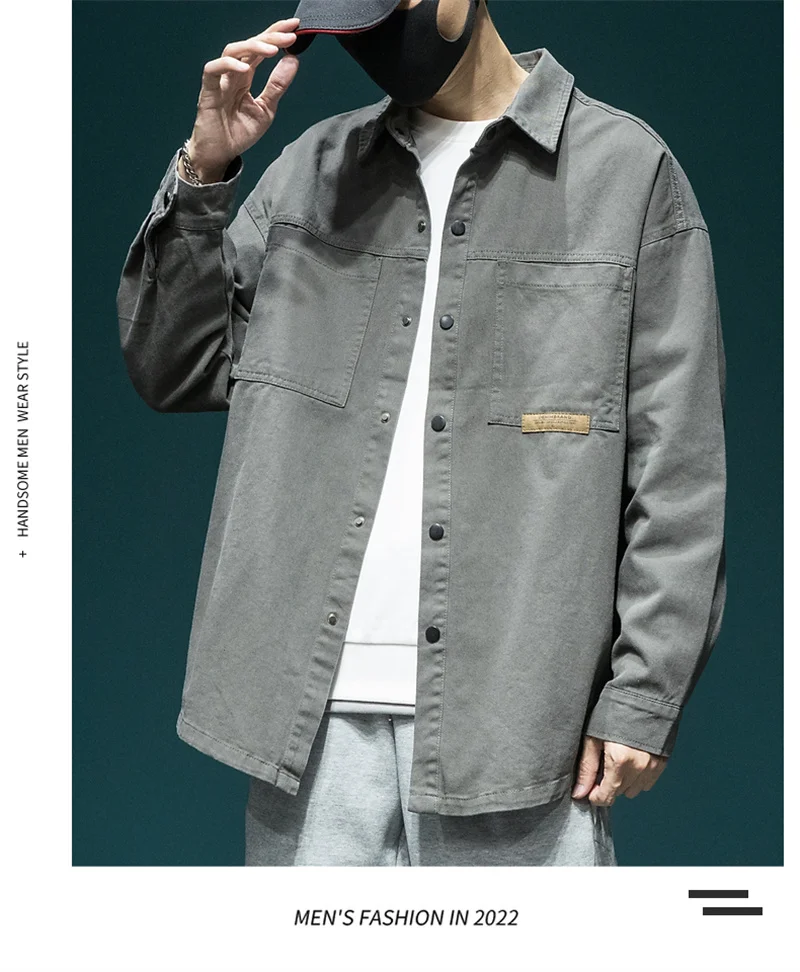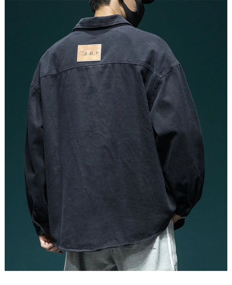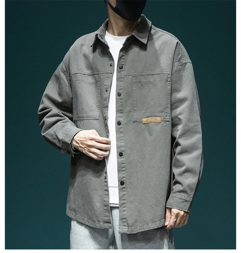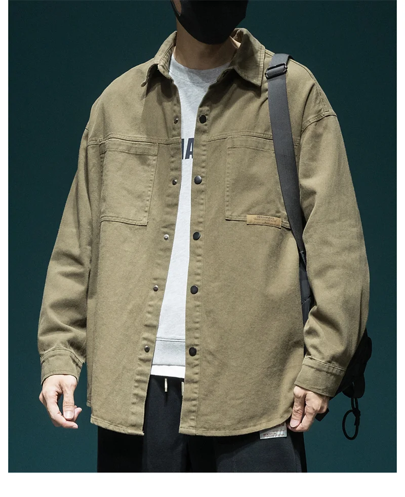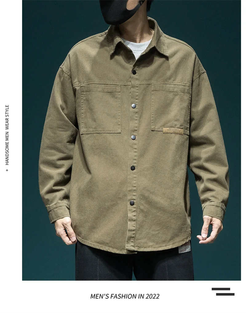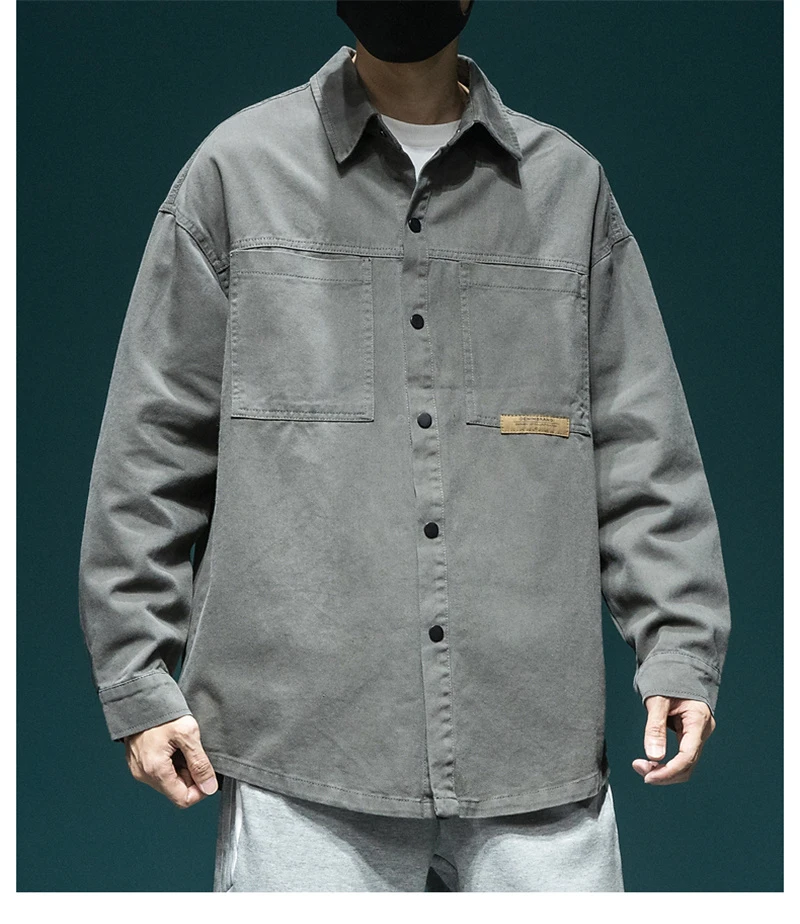 Autumn Men's Long Sleeve Cargo Shirt Casual Korean Fashion Oversize Blouses Hombre 2025 New High Street Y2K T Shirt Baggy Jacket