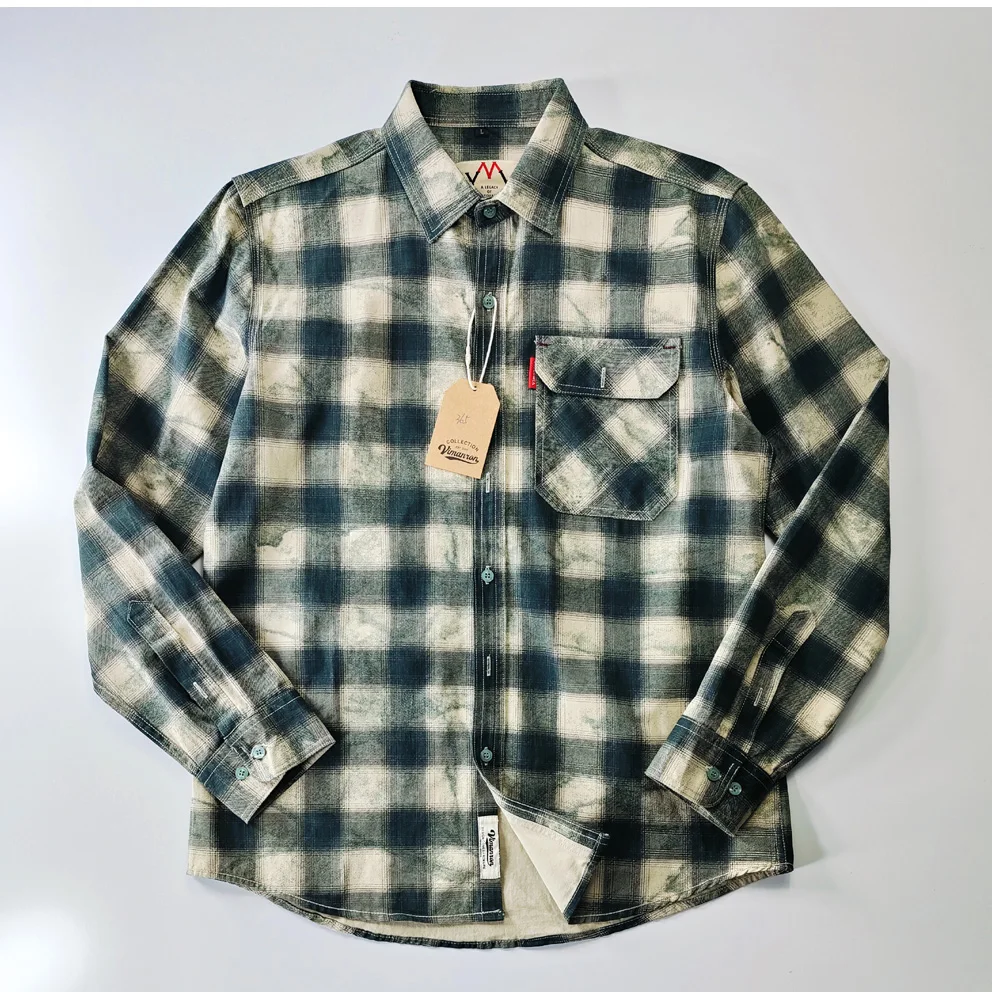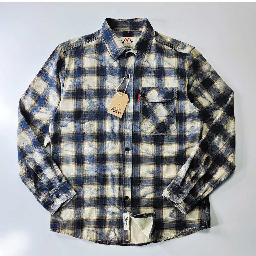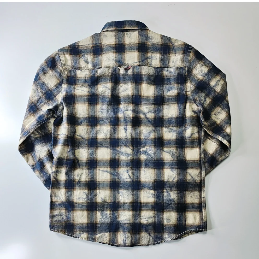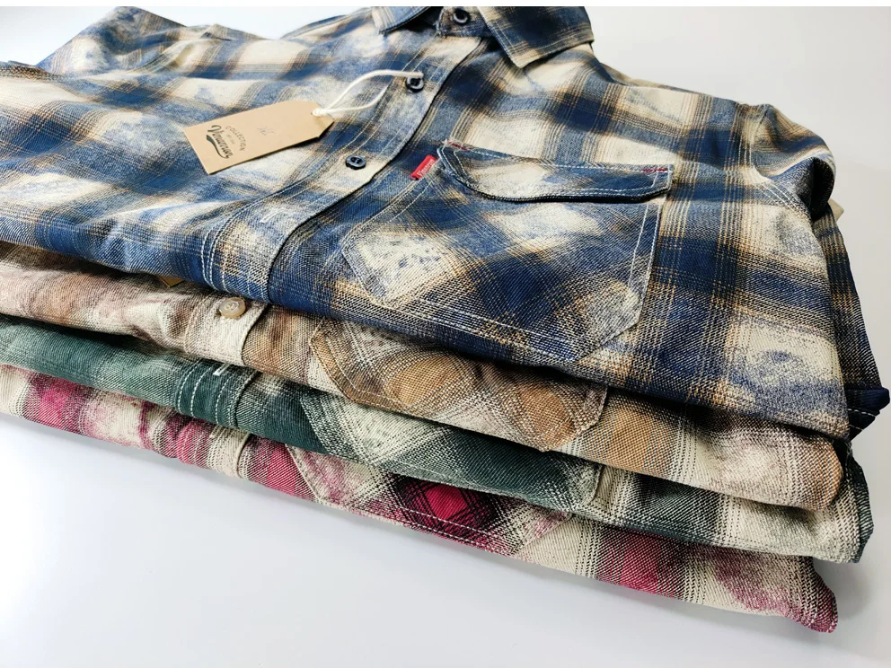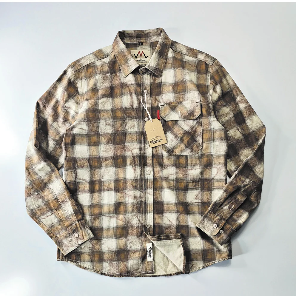 Autumn New Japanese Retro Long-Sleeve Lapel Plaid Cargo Shirt Men's Simple 100% Cotton Washed Pocket Casual Blouses Thin Coat