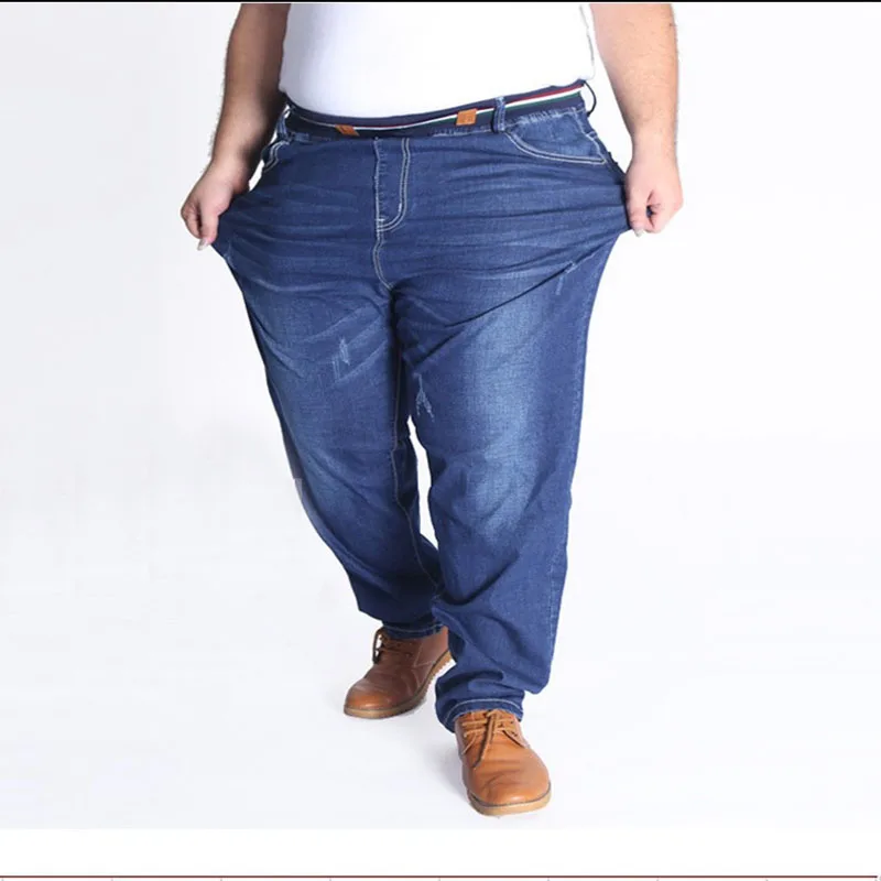 Autumn plus size casual jeans fashion men's pocket elastic waist straight plus size high elastic jeans.
