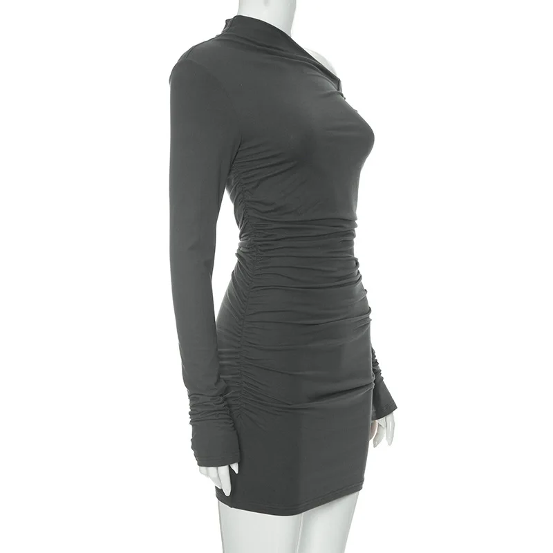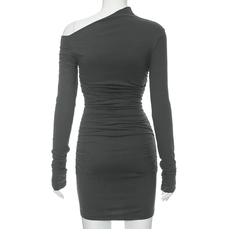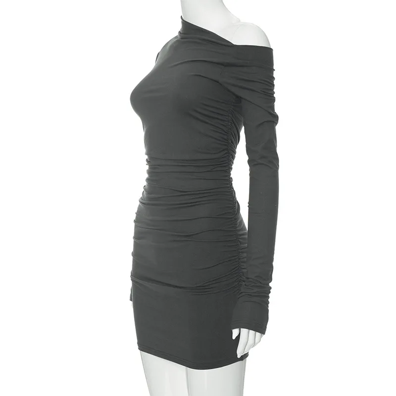 Autumn Sexy Women's Dress Black New Long Sleeves Folds Streetwear Diagonal Collar Casual Dress Club Party Elegant Dresses Female