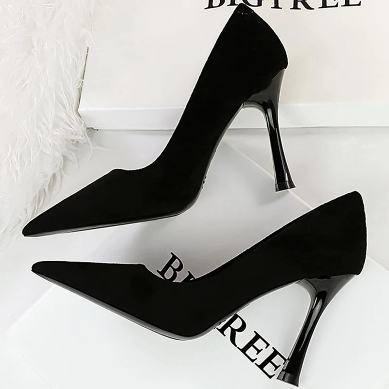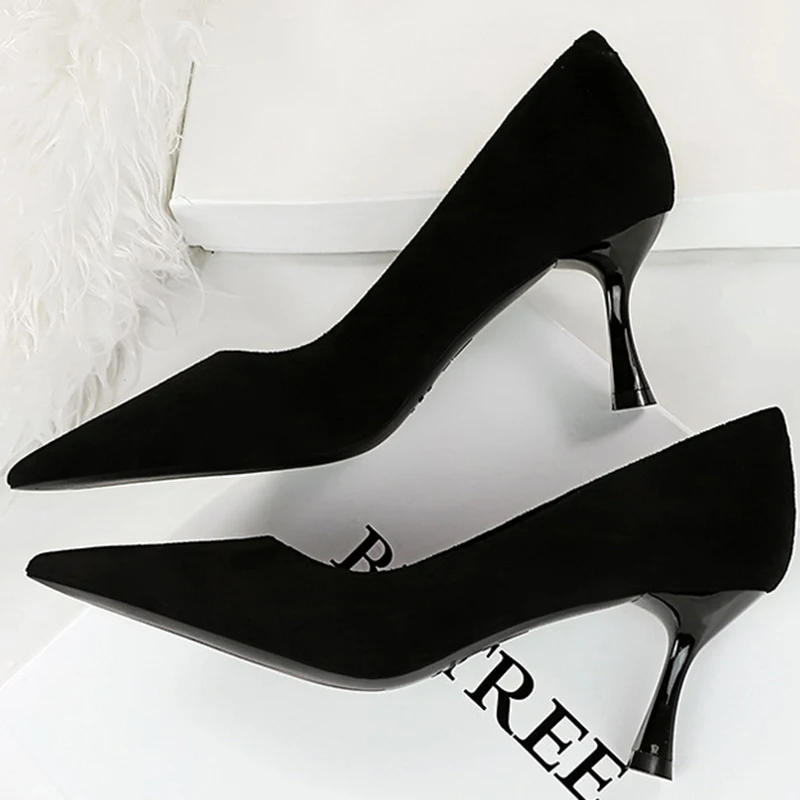 Autumn Simple Elegant 10cm 7cm High Heels Stiletto Womens Shoes Pointed Black Etiquette Professional Single Shoes Wedding Shoes