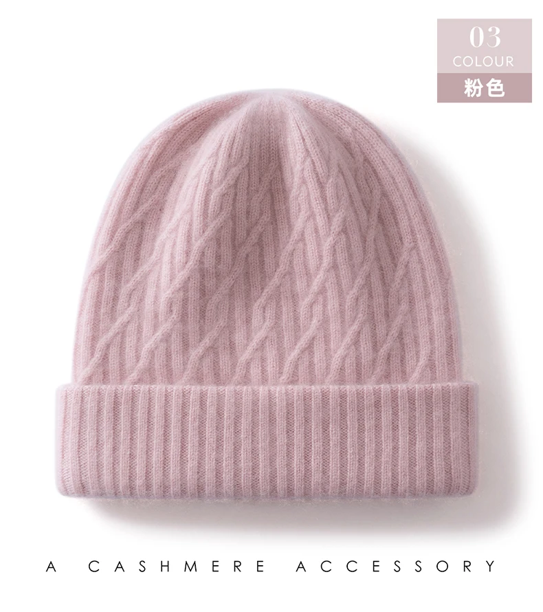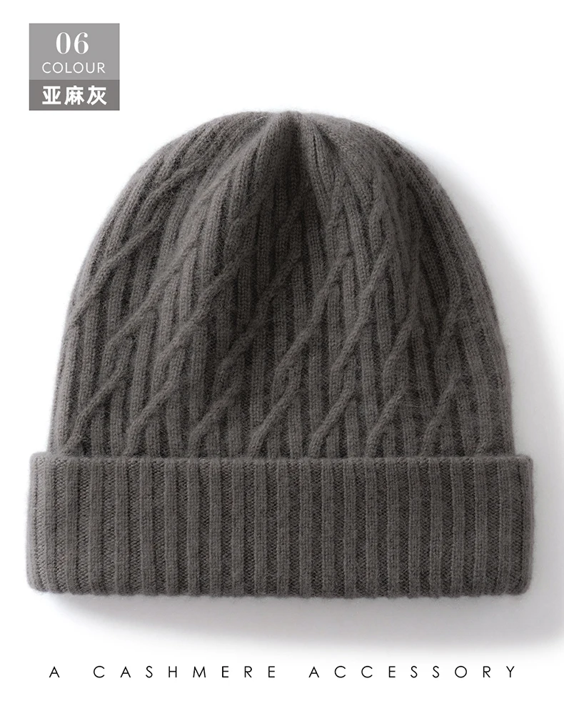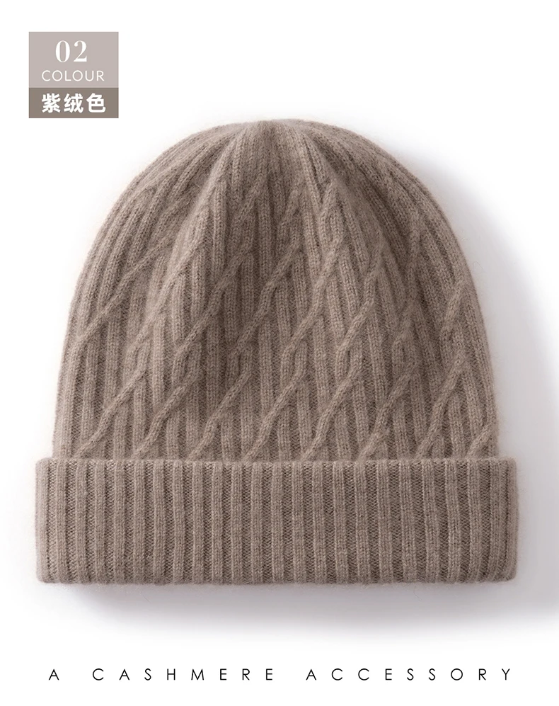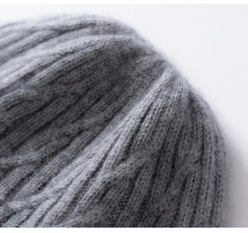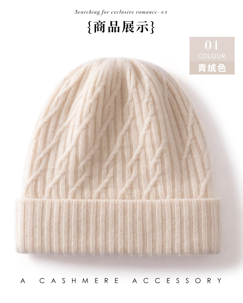 Autumn Winter 100% Cashmere Hat Double Layer Thickened Reversible Cold-Proof Unisex Knitted Wool Hat Versatile Ear Protection