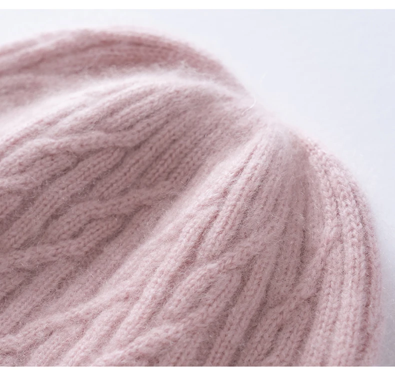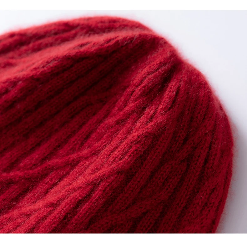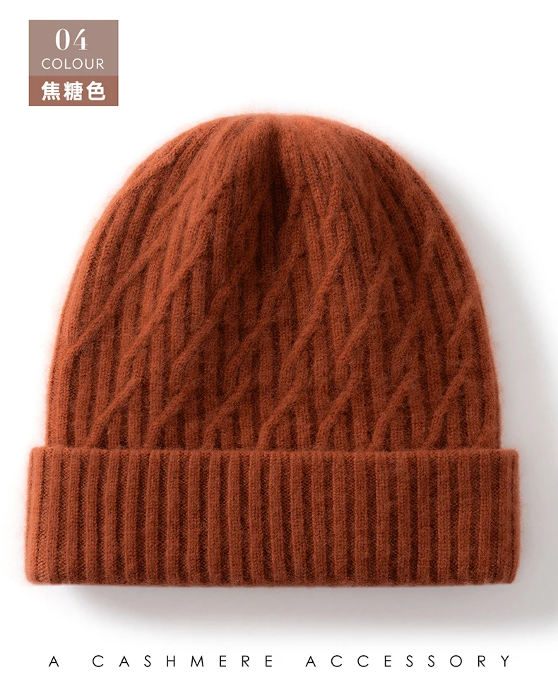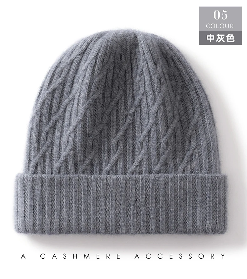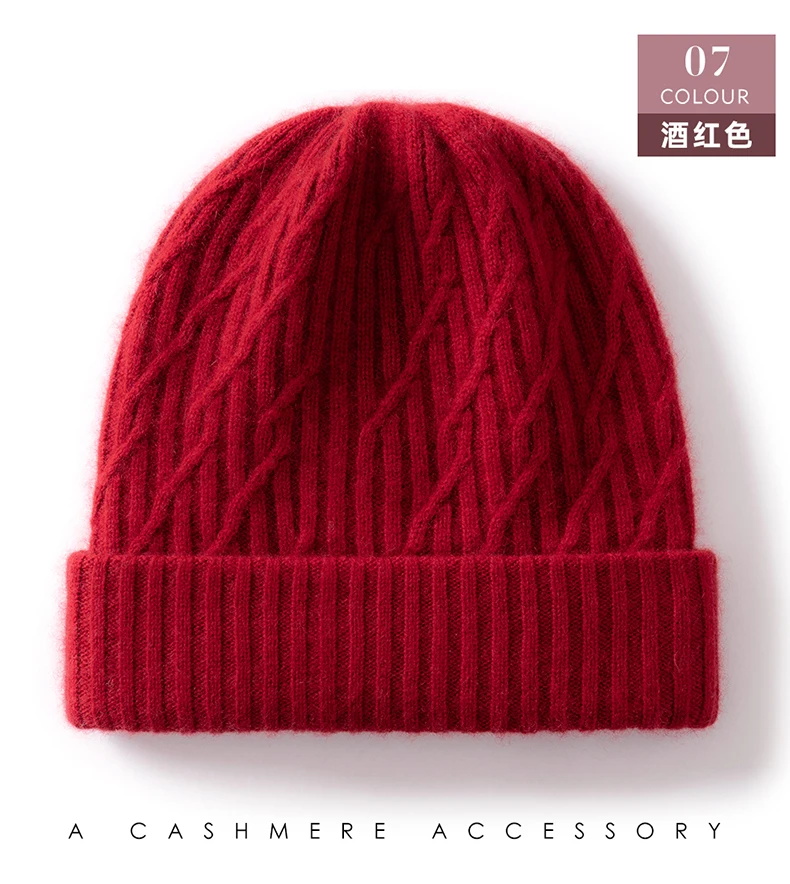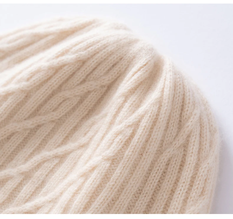 Autumn Winter 100% Cashmere Hat Double Layer Thickened Reversible Cold-Proof Unisex Knitted Wool Hat Versatile Ear Protection