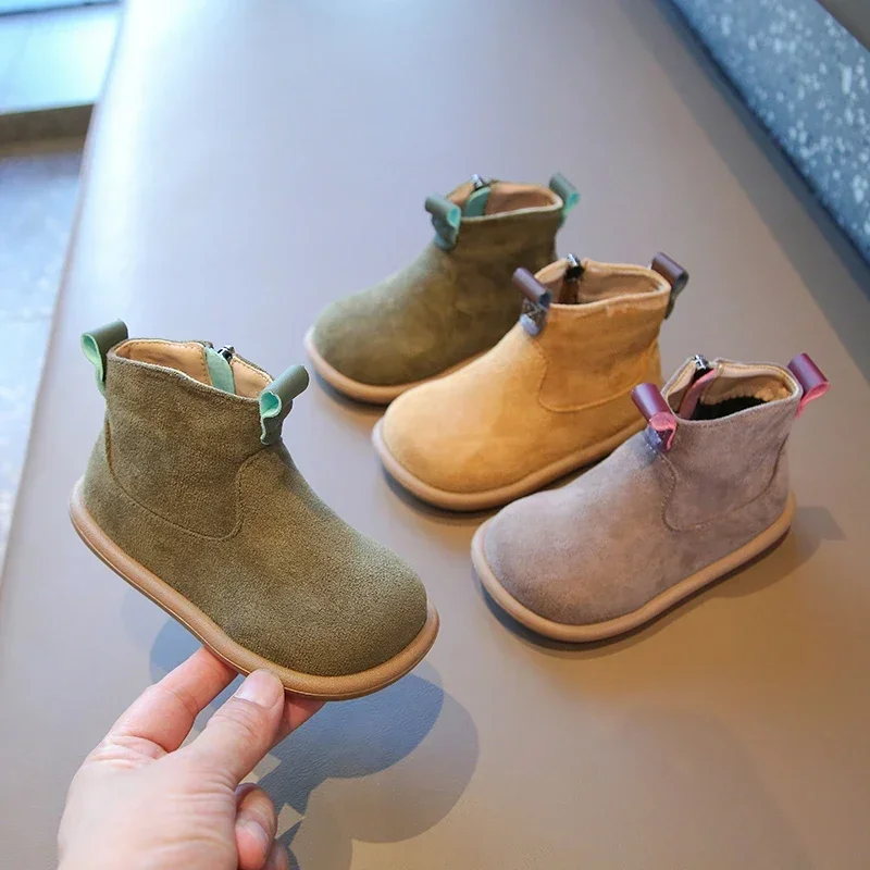 ?Autumn Winter Baby Boys Girls Boots Oxford Suede Children Casual Shoes Outdoor Anti-slip Infant Shoes Plush Kids Ankle Boots