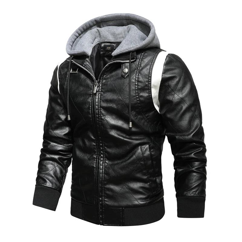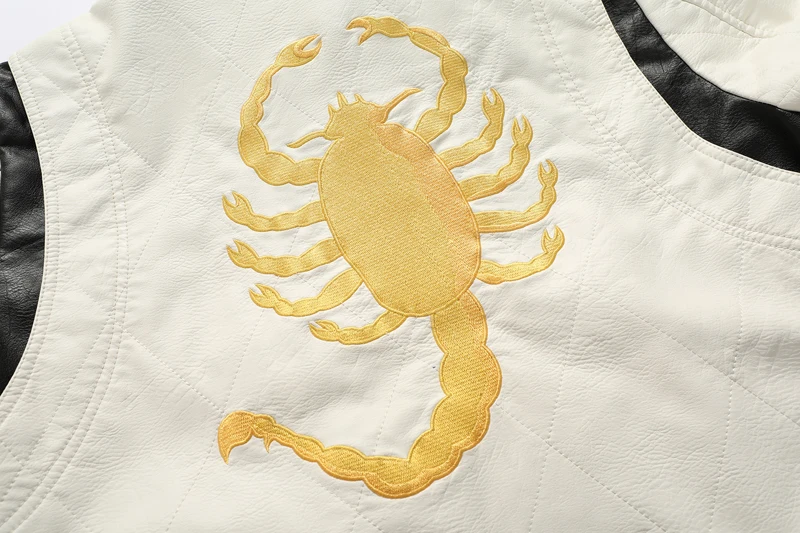 Autumn Winter Bomber Leather Jacket Men Scorpion Embroidery Hooded Jacket PU Leather Motorcycle Mens Ryan Gosling Drive Jacket
