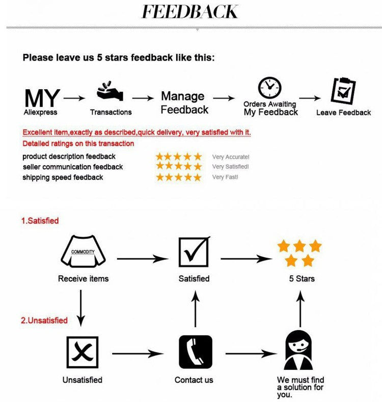 • We understand the frustrations you might have,please contact us before opening any dispute or leaving any neutral/negative feedback.