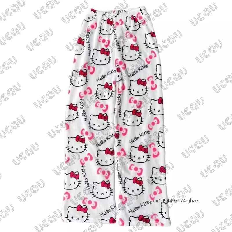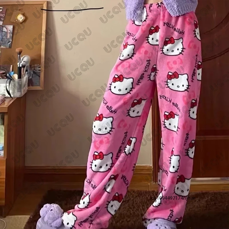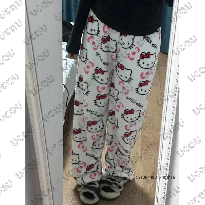 Autumn Winter Cartoon Hello Kitty Pajamas Pants Y2K Anime Women‘s Pajama Pants Couple Sleepwear Trousers Casual Home Clothes