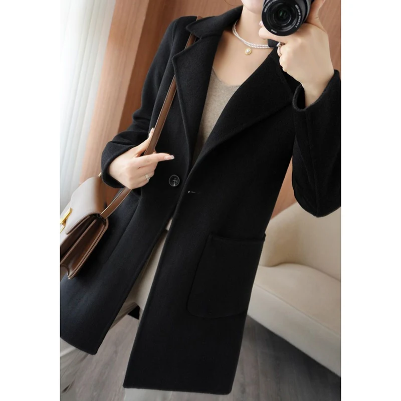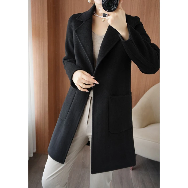 Autumn Winter Girls Fashion Mid-Long Jackets Female Casual Woolen Blends Coats Clothes Lady Korean Fashion Designer Coat