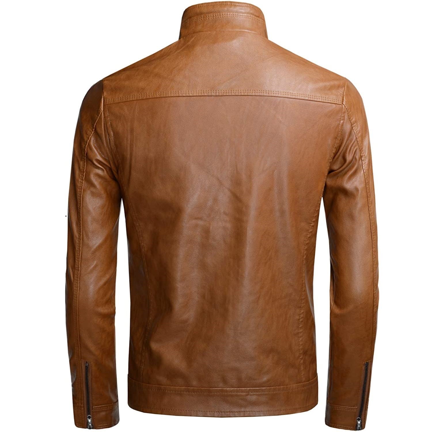 Autumn Winter Men Stand Collar Motorcycle Leather Jacket Coat Brown Black Coffee Multi Color Options Slim Fit Trendy Outerwear