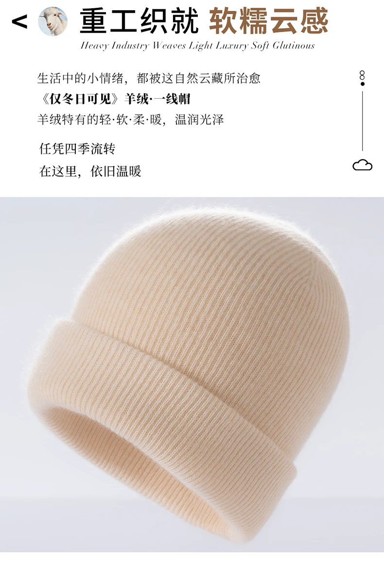Autumn Winter New 100% Cashmere Hat Women's One-Line Hat Knitted Hat Wool Hat Ear Protection High-Quality Couple Hat