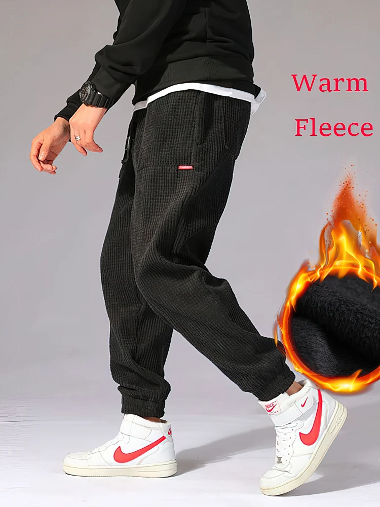 Autumn Winter Warm Motorcycle Jogger Corduroy Pants Men Tech Fleece Sweatpants Casual Harem Pants Male Sport Thermal Trousers