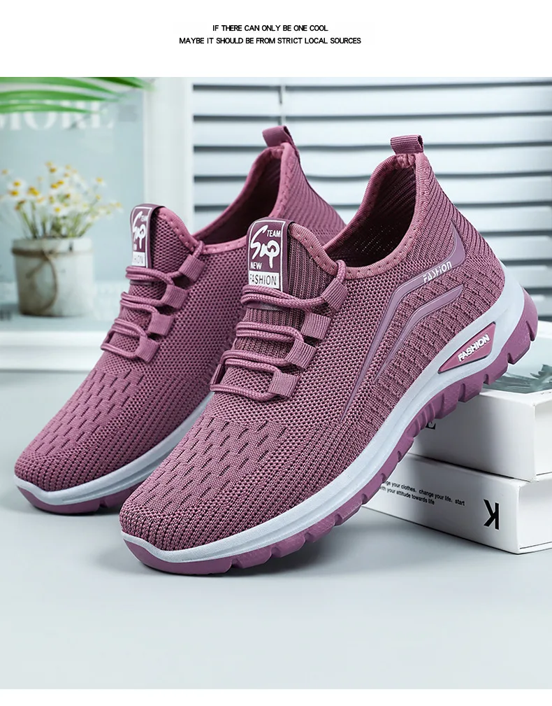 Autumn Women Casual Shoes Breathable Walking Mesh Lace Up Flat Shoes Sneakers Women Tenis Feminino Pink Zapatillas De Mujer