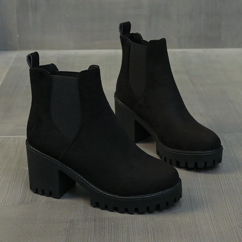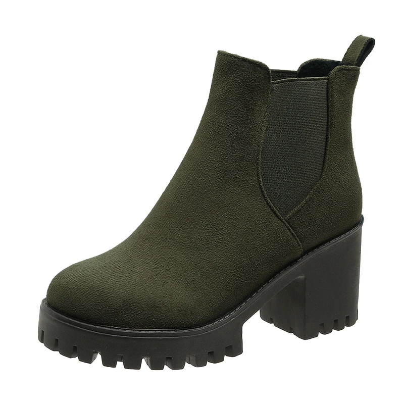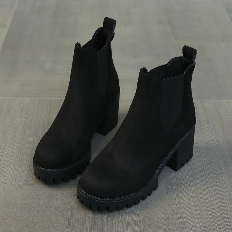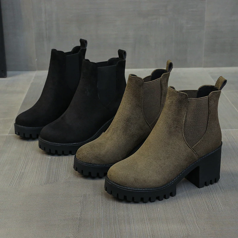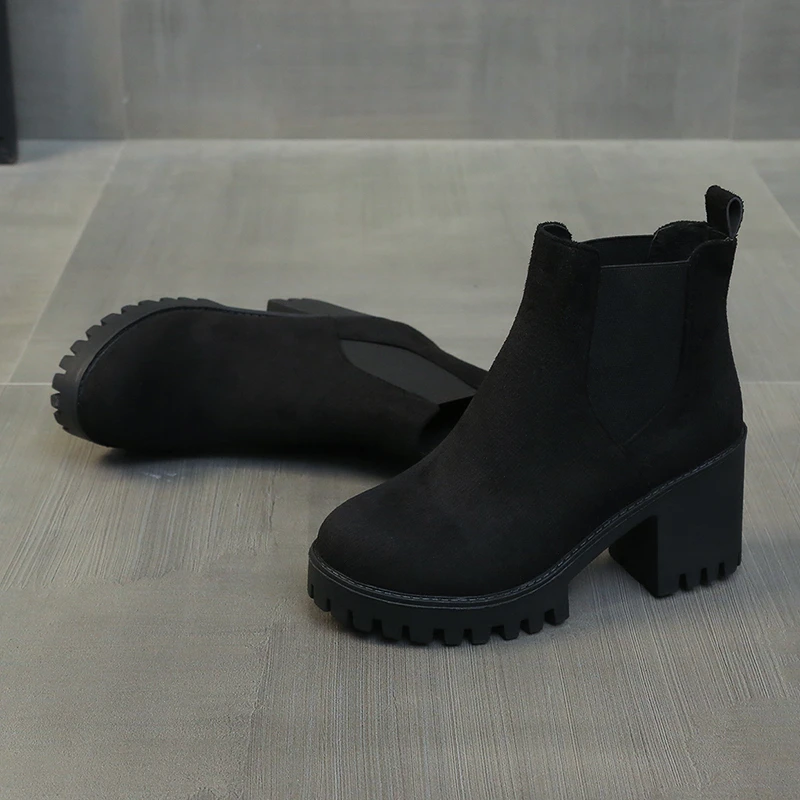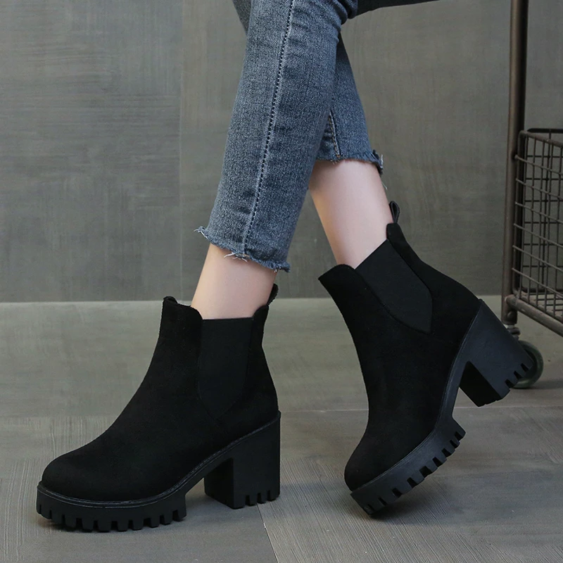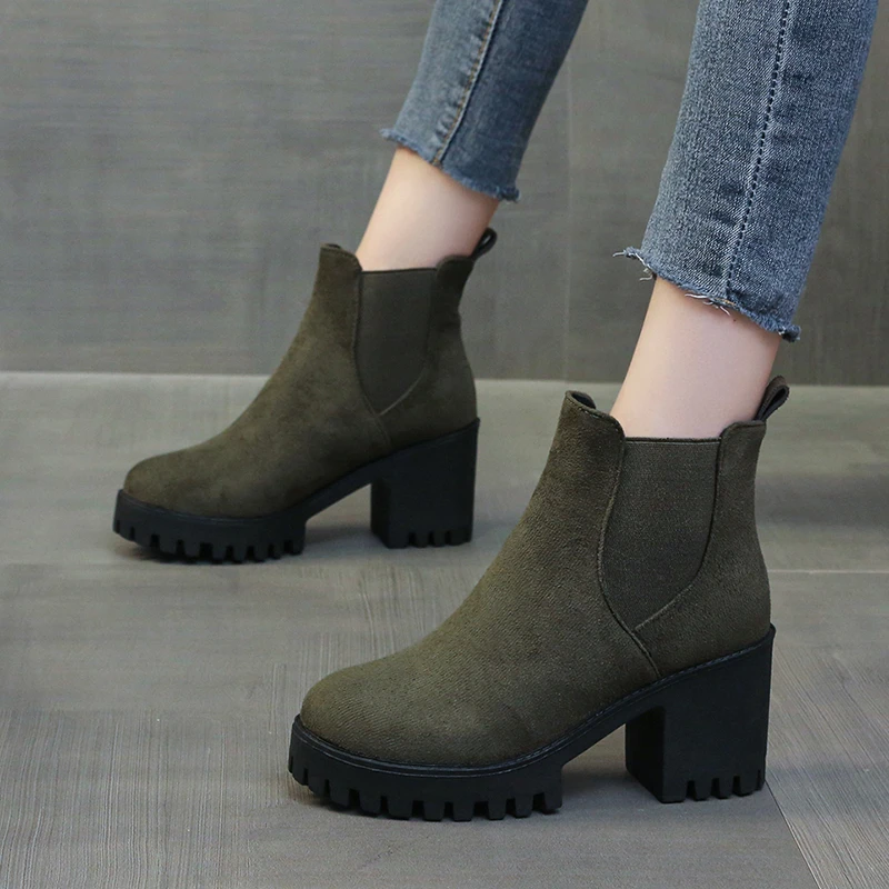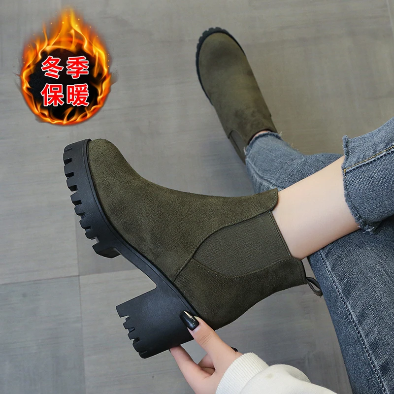 Autumn Women Suede Ankle Boots Fashion Metal Decoration Slimming Short Booties Autumn Winter Female Thick Heel Shoes D114