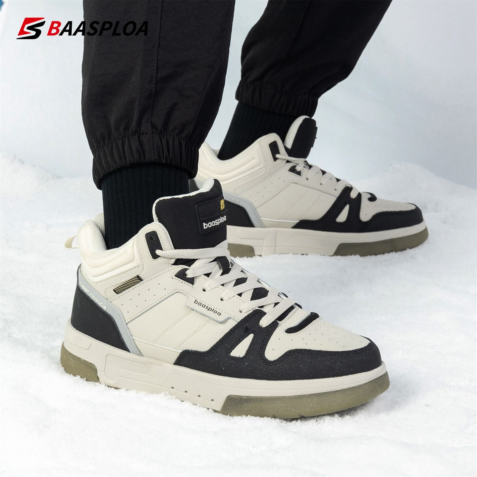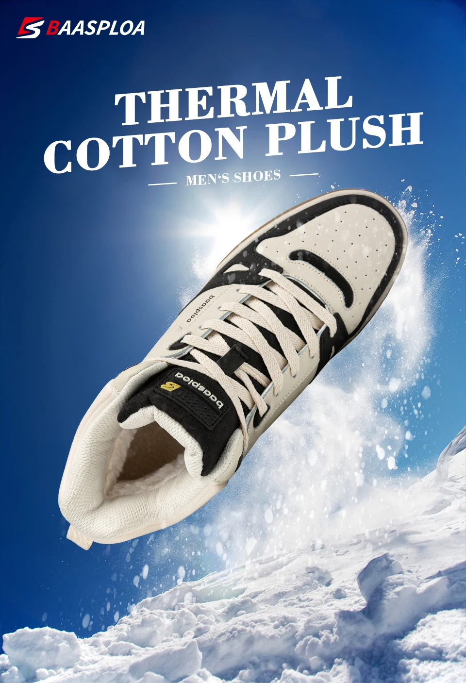 Baasploa Men Winter Sneakers Casual Skateboard Shoes for Men Comfort Plush Warm Cotton Shoes Non-Slip Outdoor Male Sneakers