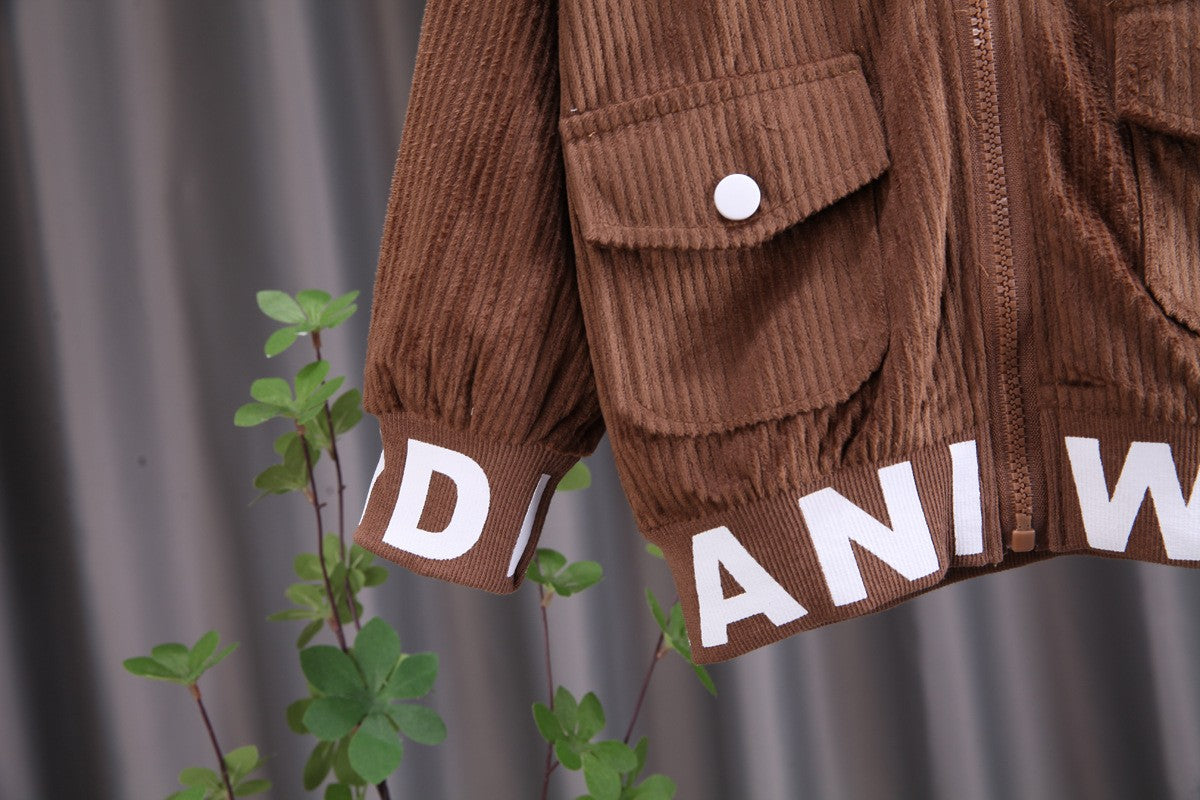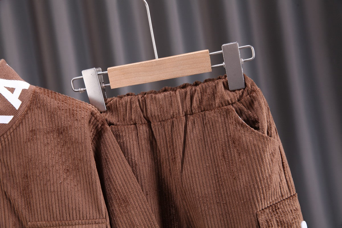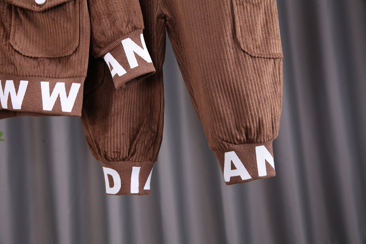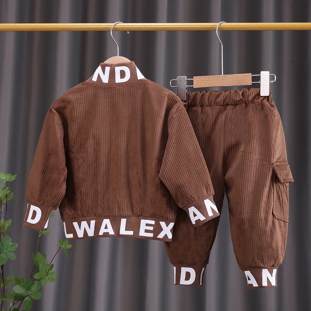 Baby boy clothes corduroy zipper long sleeved casual sports two-piece set for 0-5 year old fashionable girls with top and pants