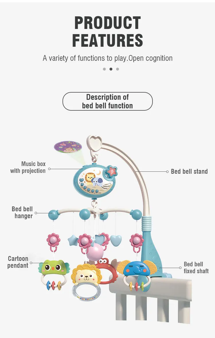 5. Easy to use: easy to mount and attach to the bracket. Applicable types: Mainly used in cribs, strollers, etc., babies can play toys in cribs.