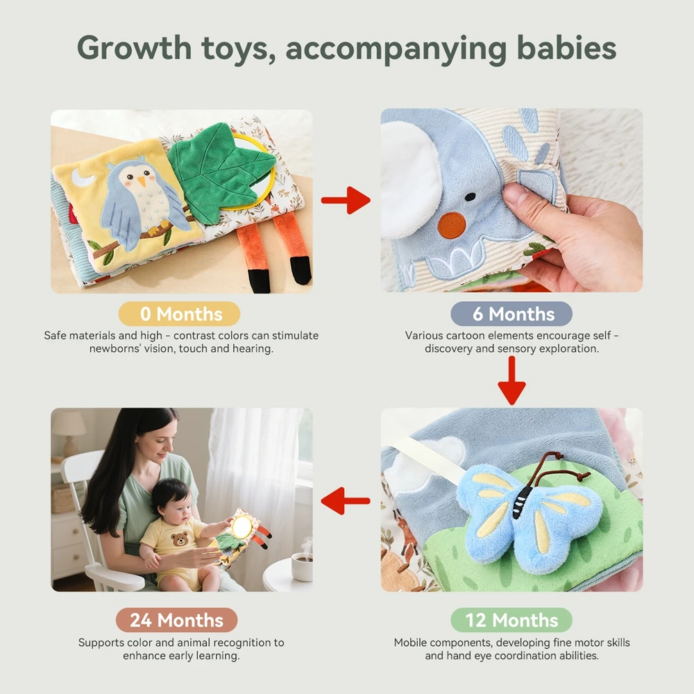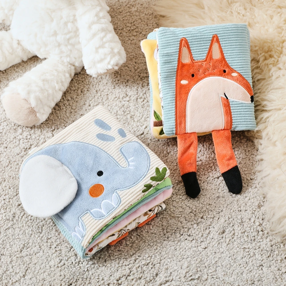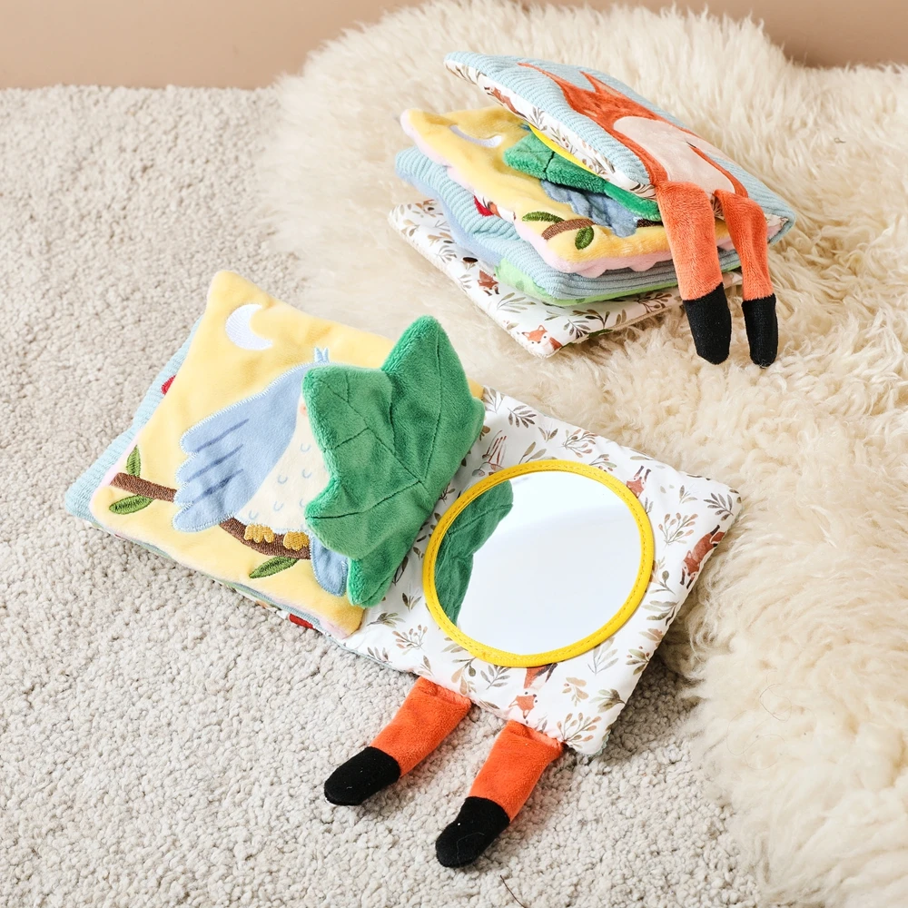Baby Toys for 0 12 Months Cloth Book Early Educational Sensory Book Baby Soft Books Fluffy Cartoon Elephant Books With Mirror