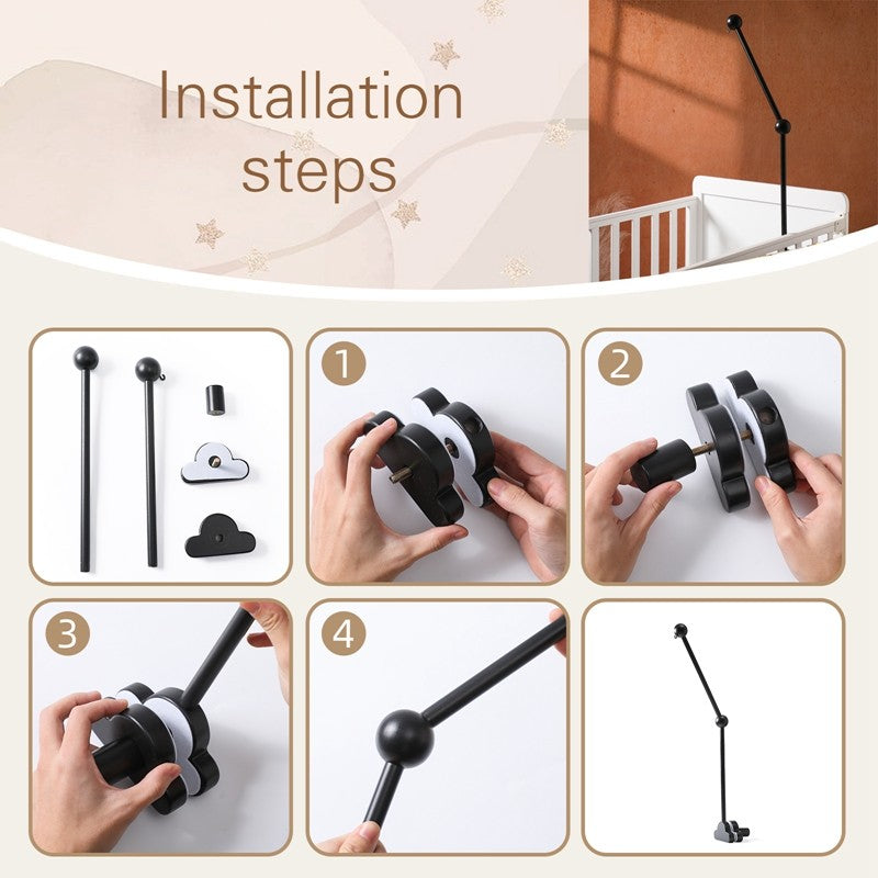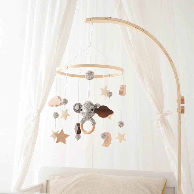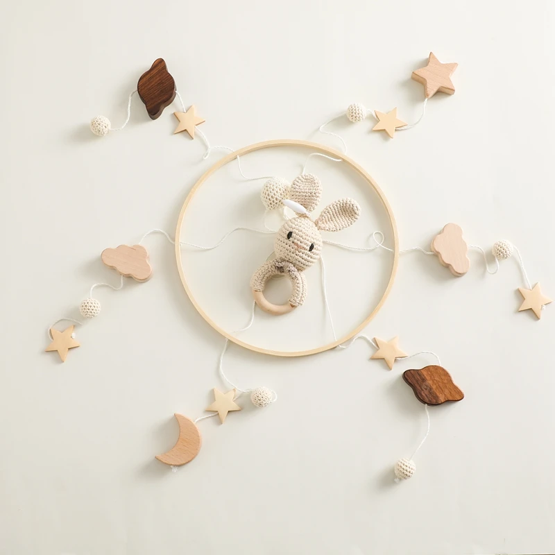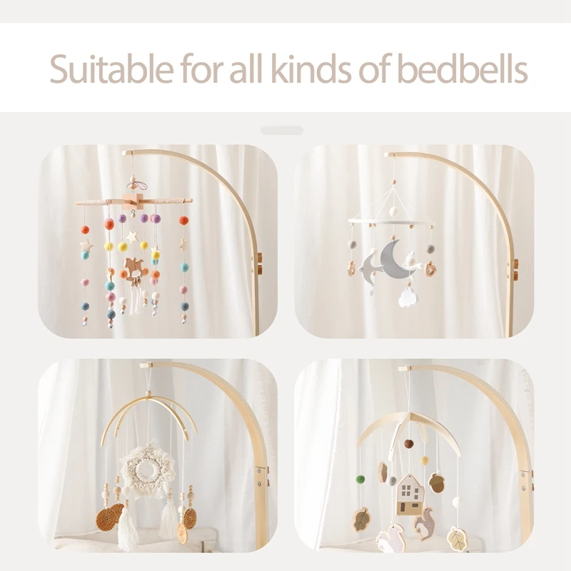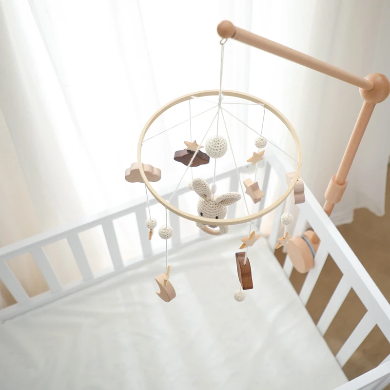 Baby Wooden Bed Bell Cartoon Rabbit Mobile Hanging Rattles Toy Hanger Crib Mobile Bed Bell Wood Toy Holder Arm Bracket Kid Gifts
