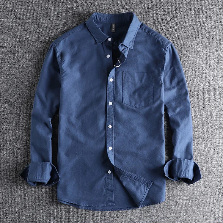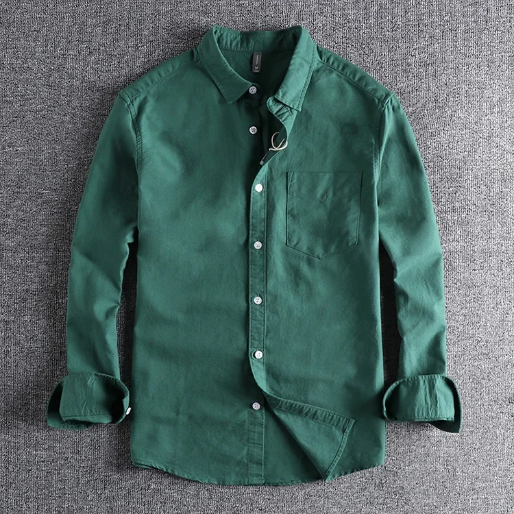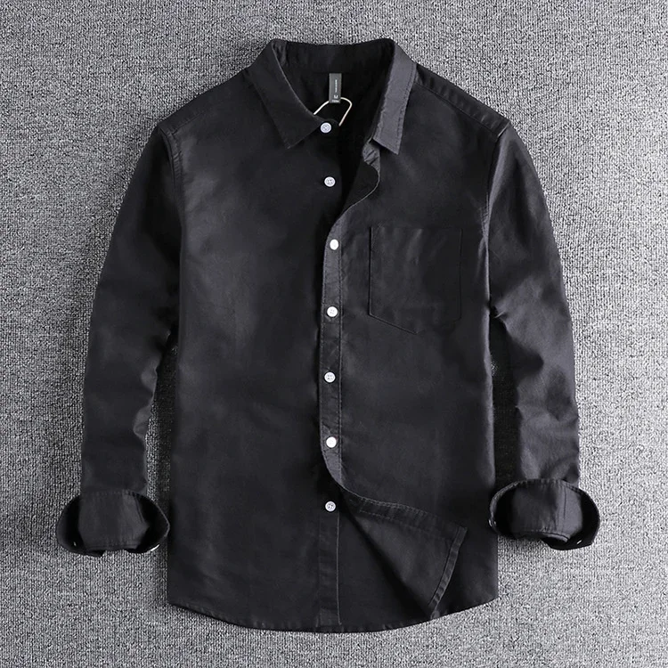 Basic Minimalist Men Shirt Jacket Pure Cotton Washed Oxford Military Light Casual Work Safari Style Shirts Mens Tops Shirt