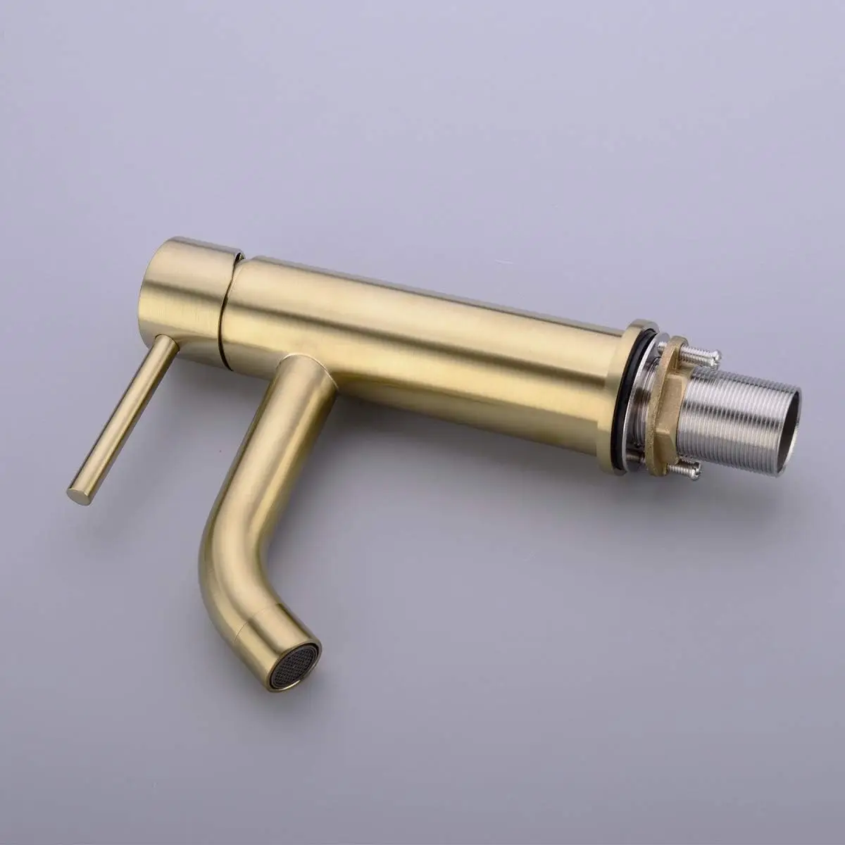 Bathroom Faucet Solid Brass Bathroom Basin Faucet Cold And Hot Water Mixer Sink Tap Single Handle Deck Mounted Brushed Gold Tap
