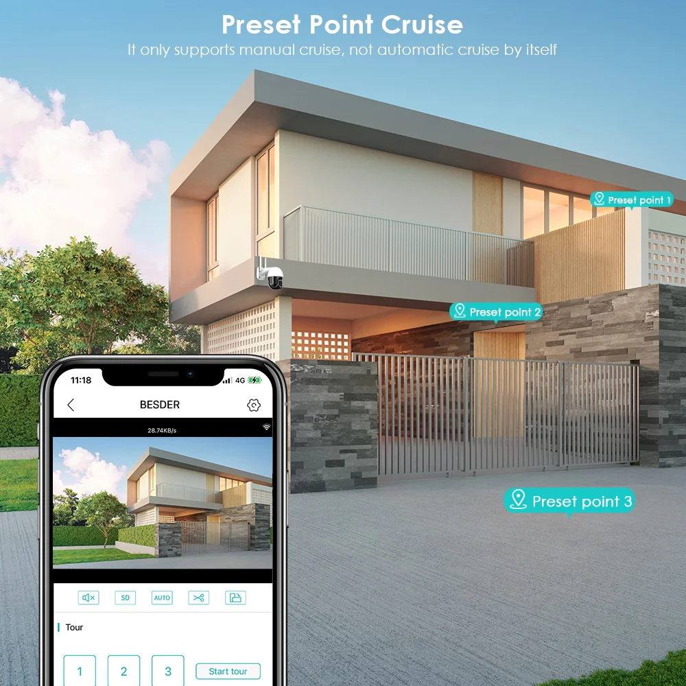 Quickly finds human targets and immediately sends a notification to your phone, letting you see what happens anywhere. It only detects the human shape and will not trigger falsely for objects such as cars and trees.