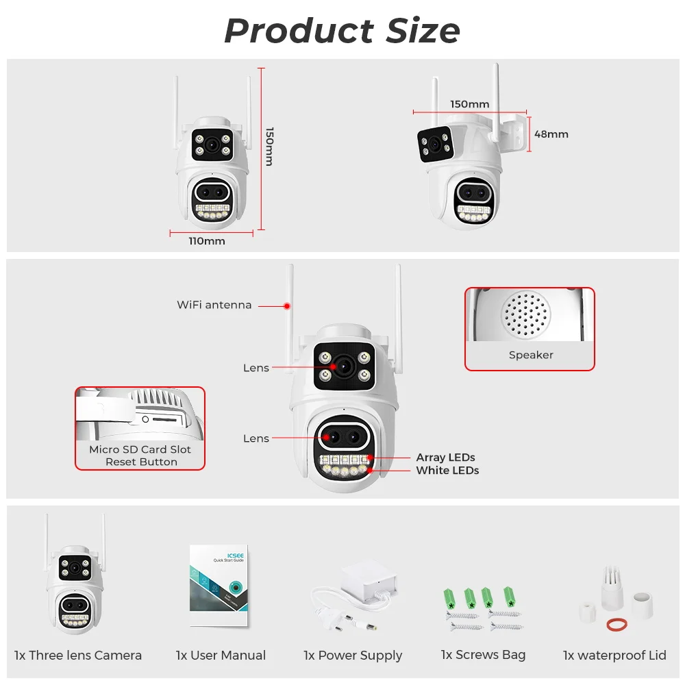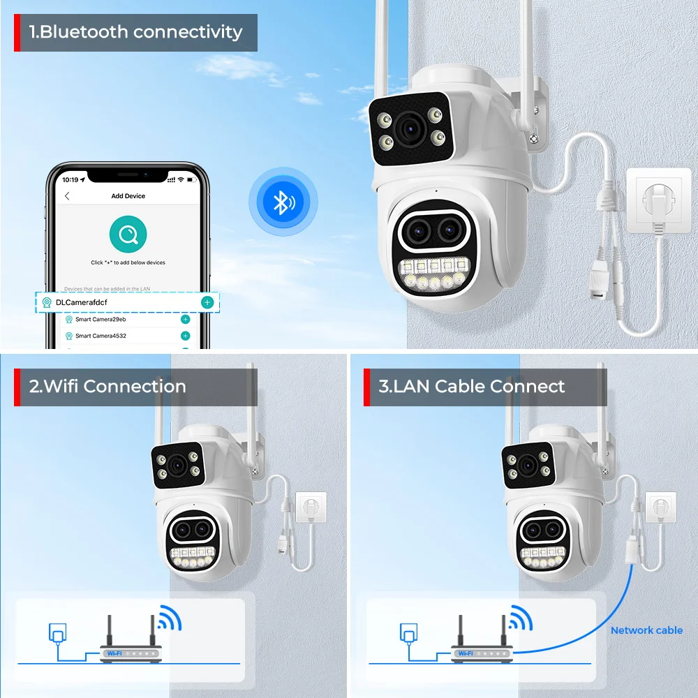 BESDER 6K 12MP Wifi Camera PTZ Dual Screen 8X Digital Zoom AI Auto Tracking Outdoor 8MP CCTV IP Camera Security Protection iCSee