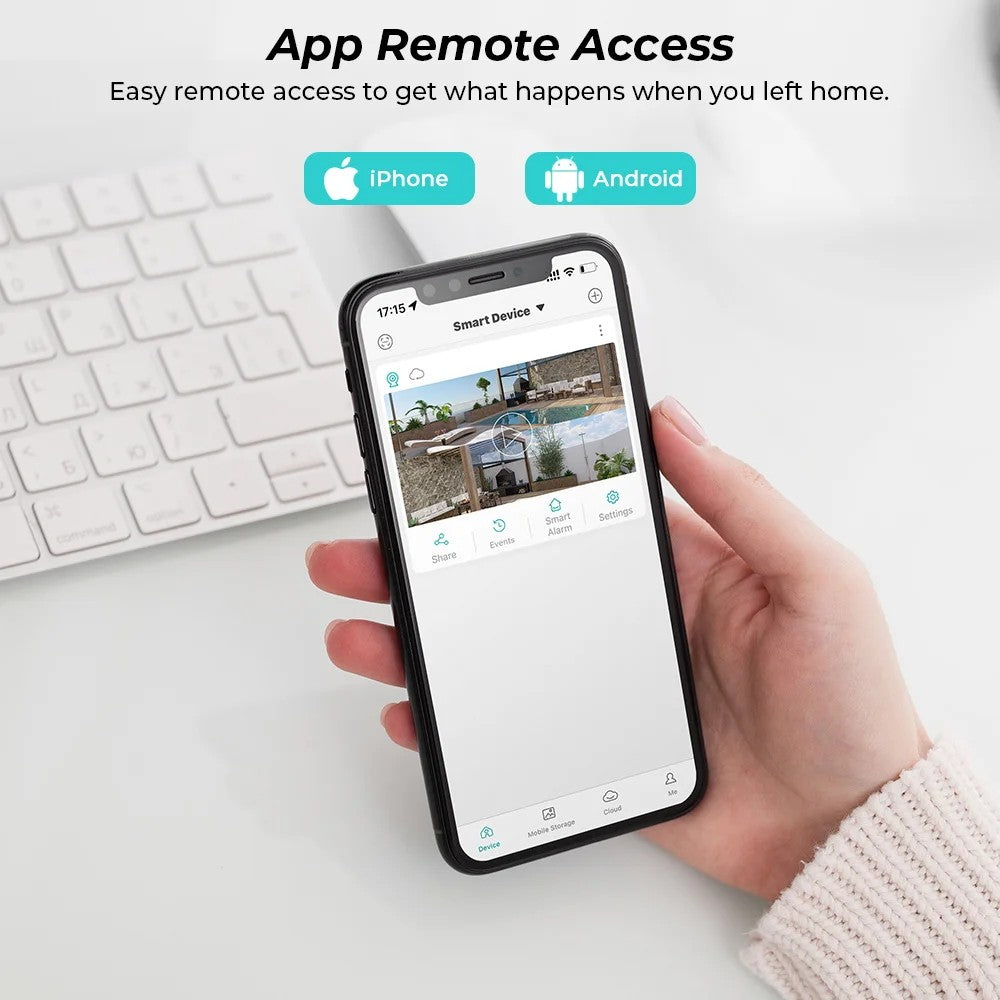 After locking the target, the camera will adjust the pan rotation automatically, Tracking Moving Human and push alerts notifications to your Smartphone.