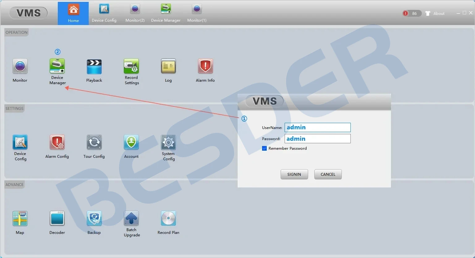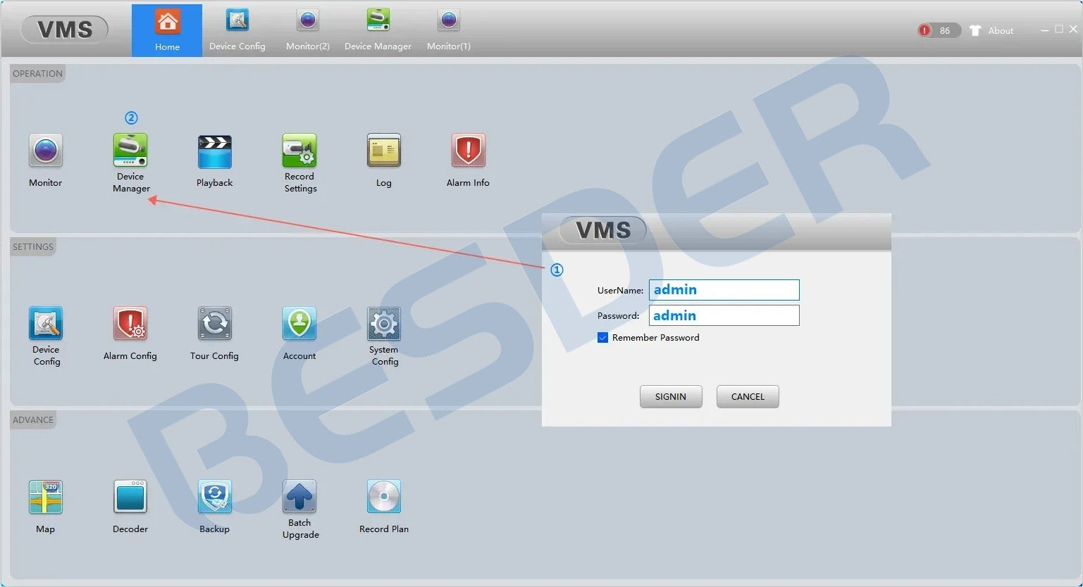 ? The username and password of VMS software are both admin