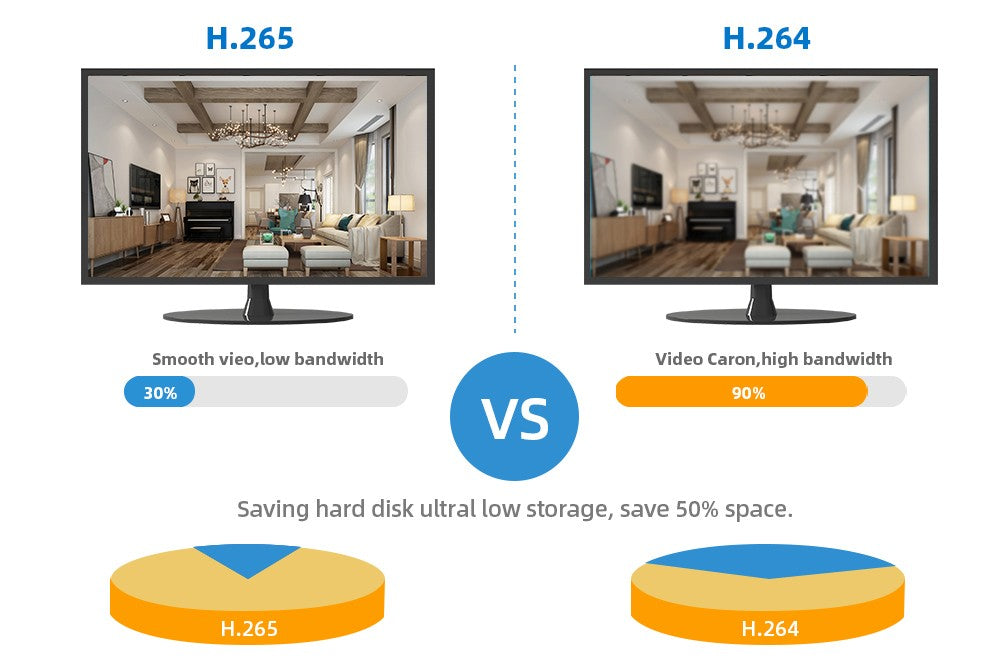 Save you 50% of storage space. Provide you with up to 50% excellent bandwidth improvement, faster image transmission speed, and enjoy smoother video playback speed