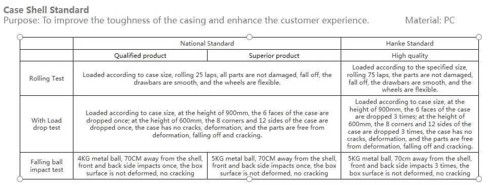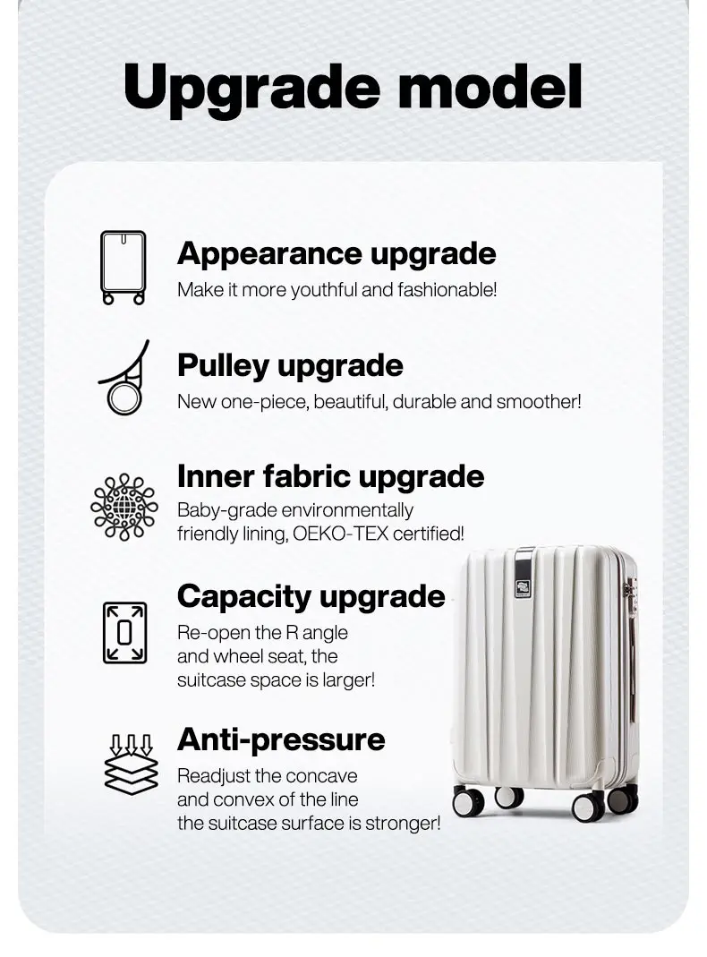 To judge a trolley case’s quality, the key point is its material. We use a new type of composite PC material, which constitutes the main structure of the trolley case.