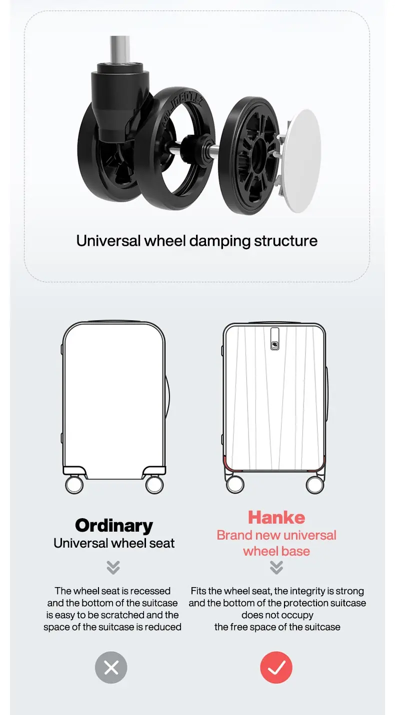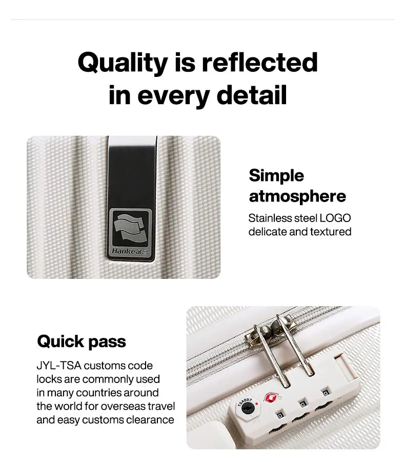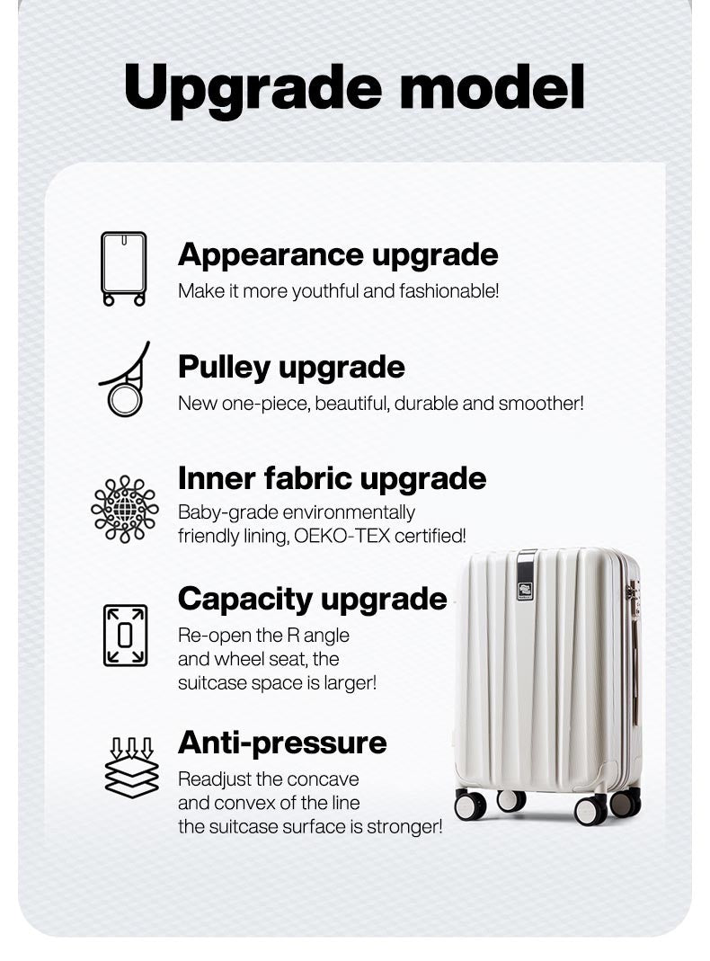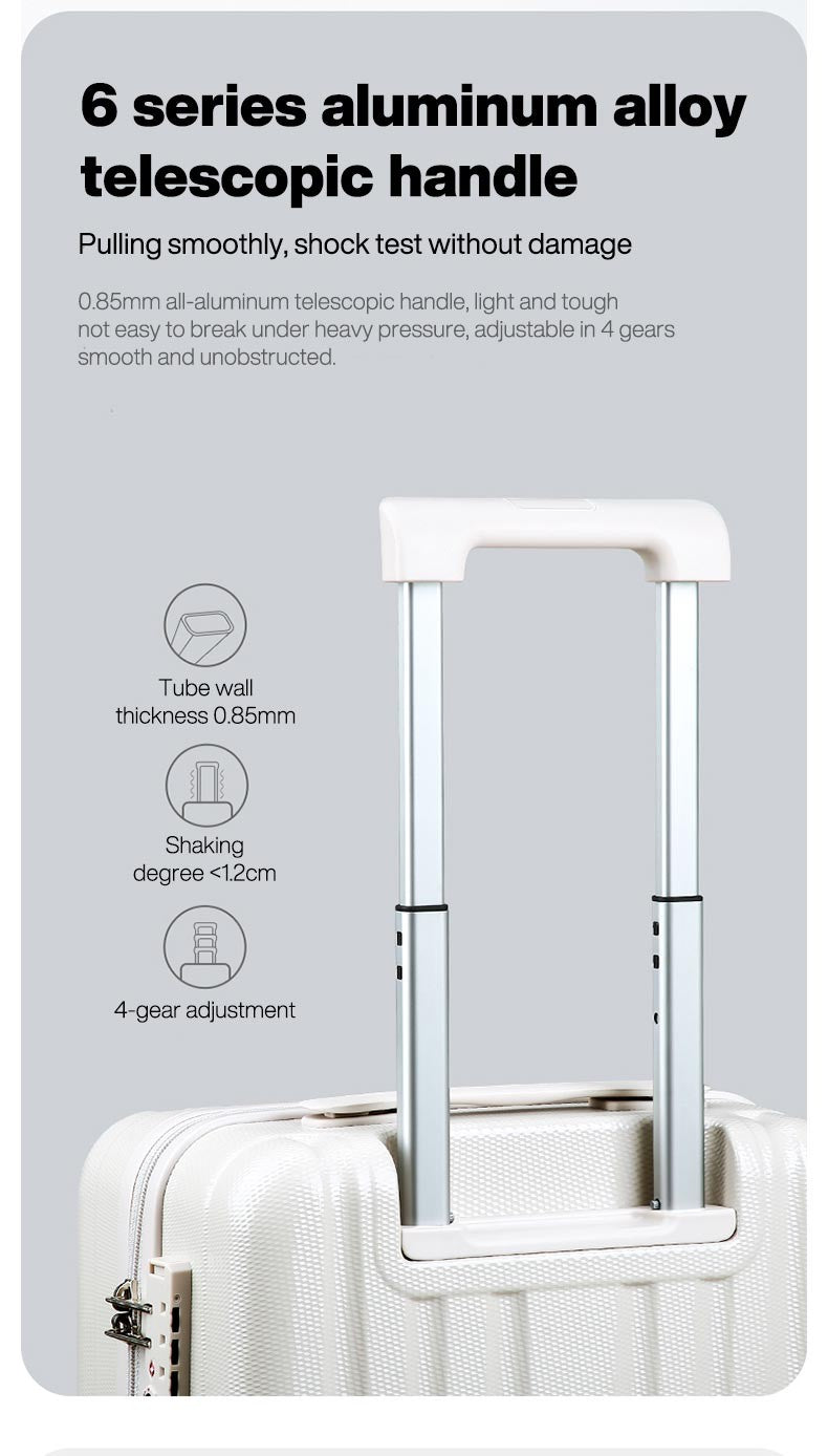 Each component is independently separable, which makes it easy to sort and recycle the trolley case that has reached the end of its usage life, avoiding non-degradable pollution to the environment.