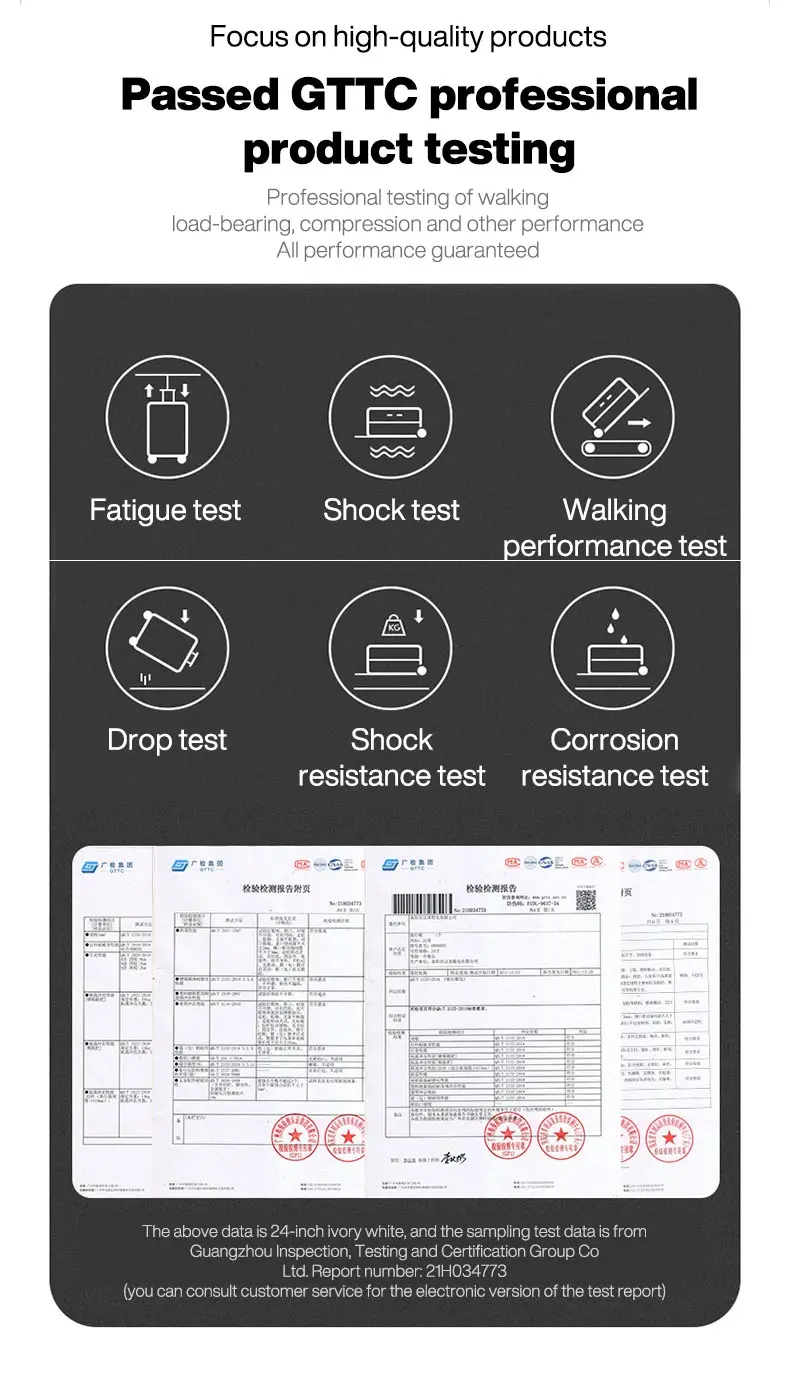 Dear friends, all of our products are excellent in materials and technology. Please keep the Luggage after-sales card and enjoy 3 Year Free Repair Warranty. Quality is ensured. Please buy with confidence.