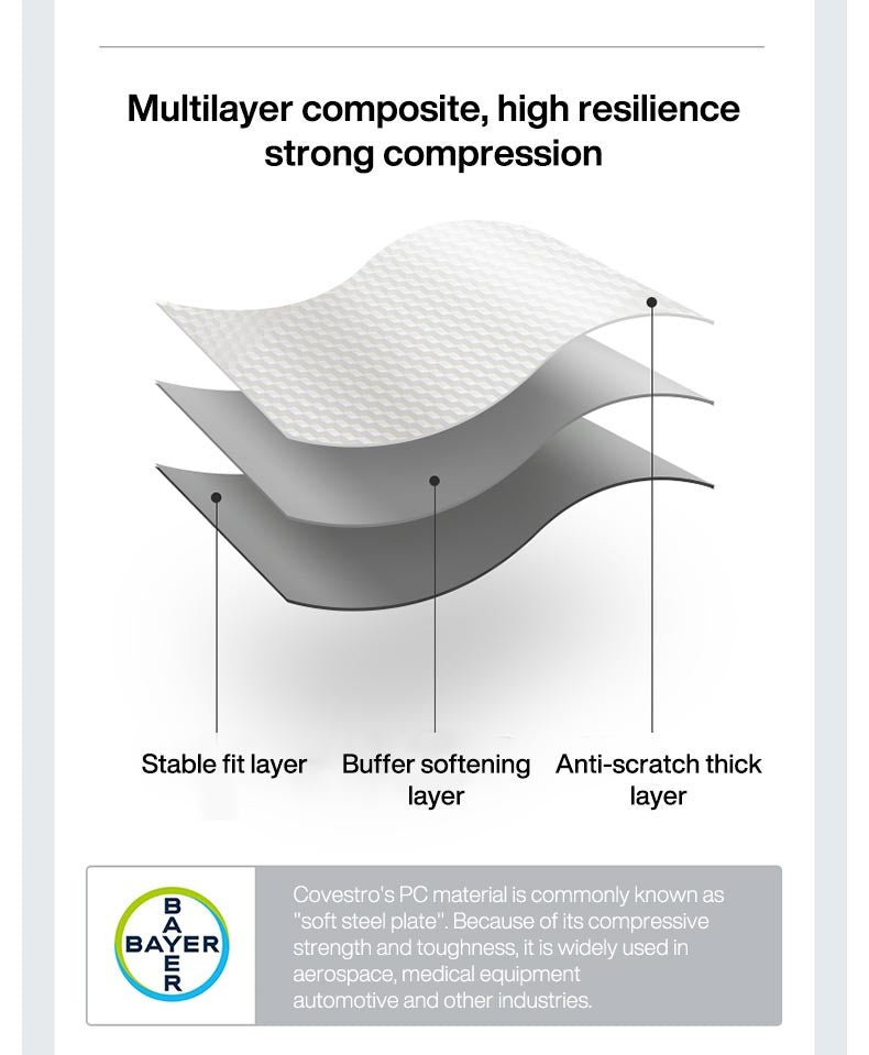Different from some ABS+PC materials, the case body is very thin and light, and its elastic characteristics can achieve cushioning effect.