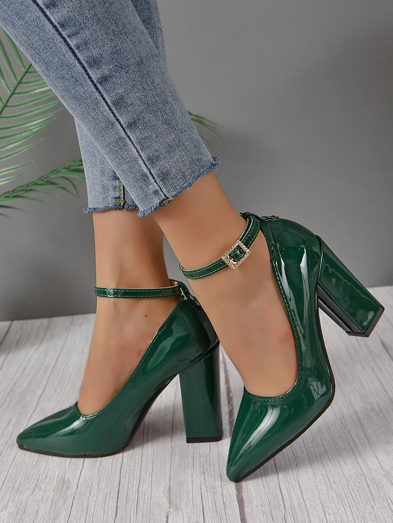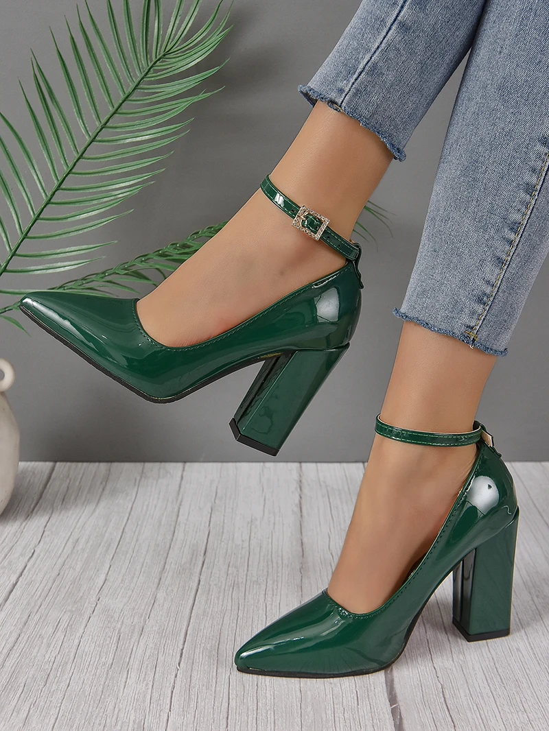 Black 10cm Super High Heel Pumps Women Shoes Pointed Toe Fashion Crystals Pearl Pendant Pimp Buckle Patent Leather Big Size 50