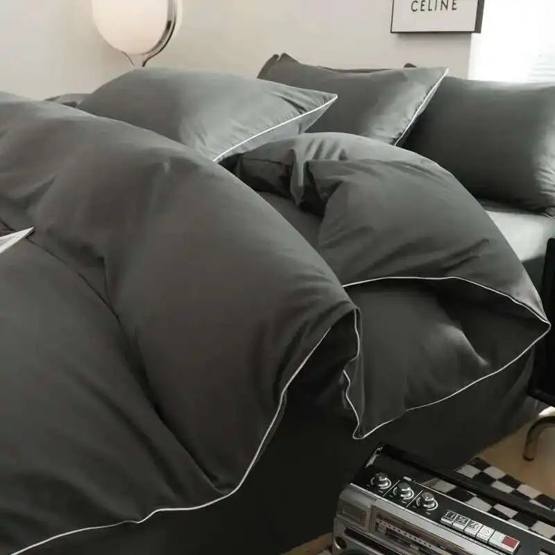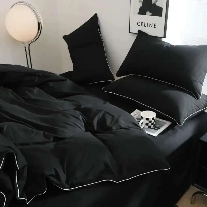 Black Bedding Set - Minimalist Queen/King Size Quilt Set 100% Cotton Plain Bed Cover Full Set (Includes Pillowcases)?