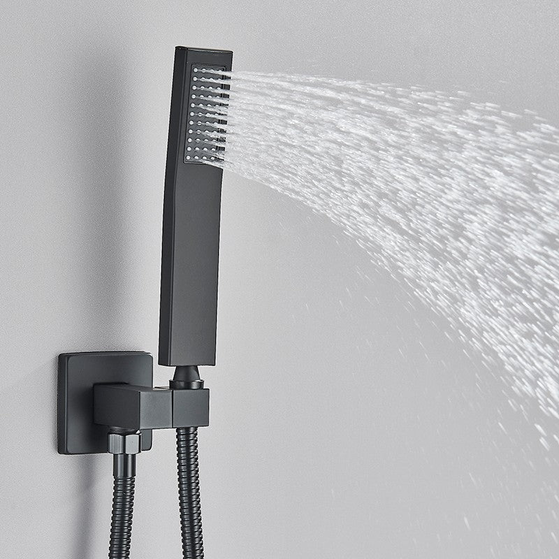 Black Concealed Shower System Rain Waterfall Bathroom Embedded Shower Faucet Set with Tub Spout