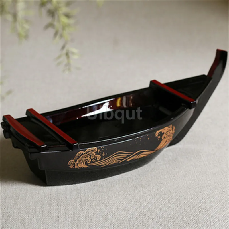 Black red sushi sashimi boat ice food seafood plate salmon sashimi tray Creative Japanese food container sushi barrel decor boat