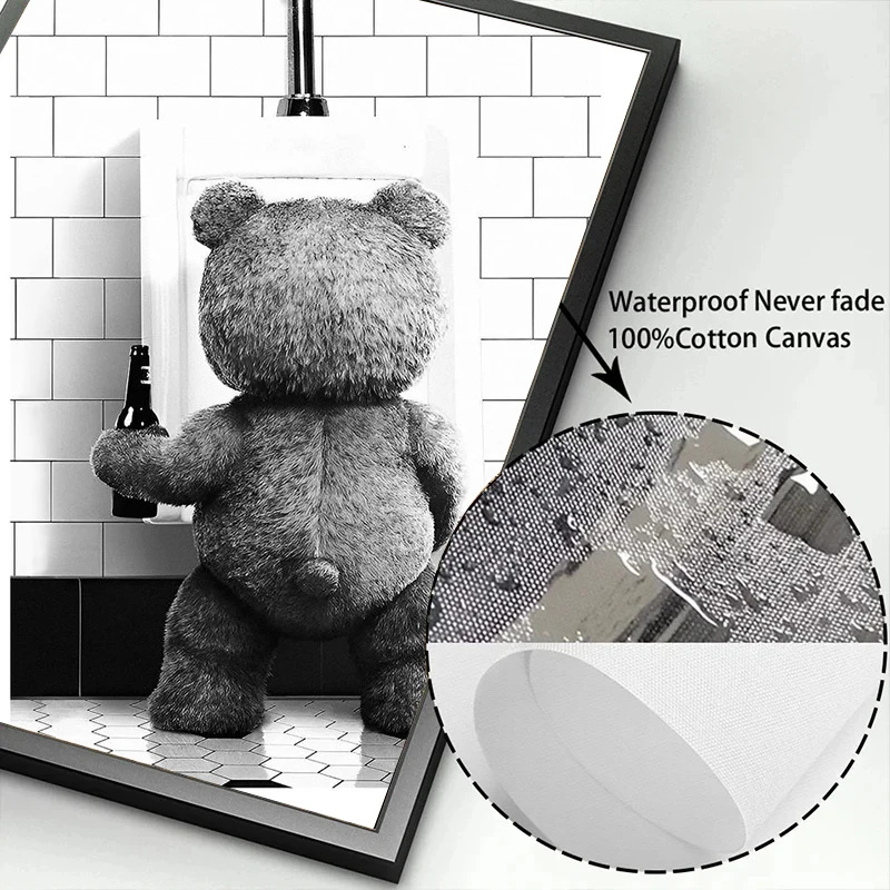 Black White Cute Bear Bathroom Decoration Poster Canvas Print Painting Wall Picture Art Modern Fashion Room Home Toilet Decor