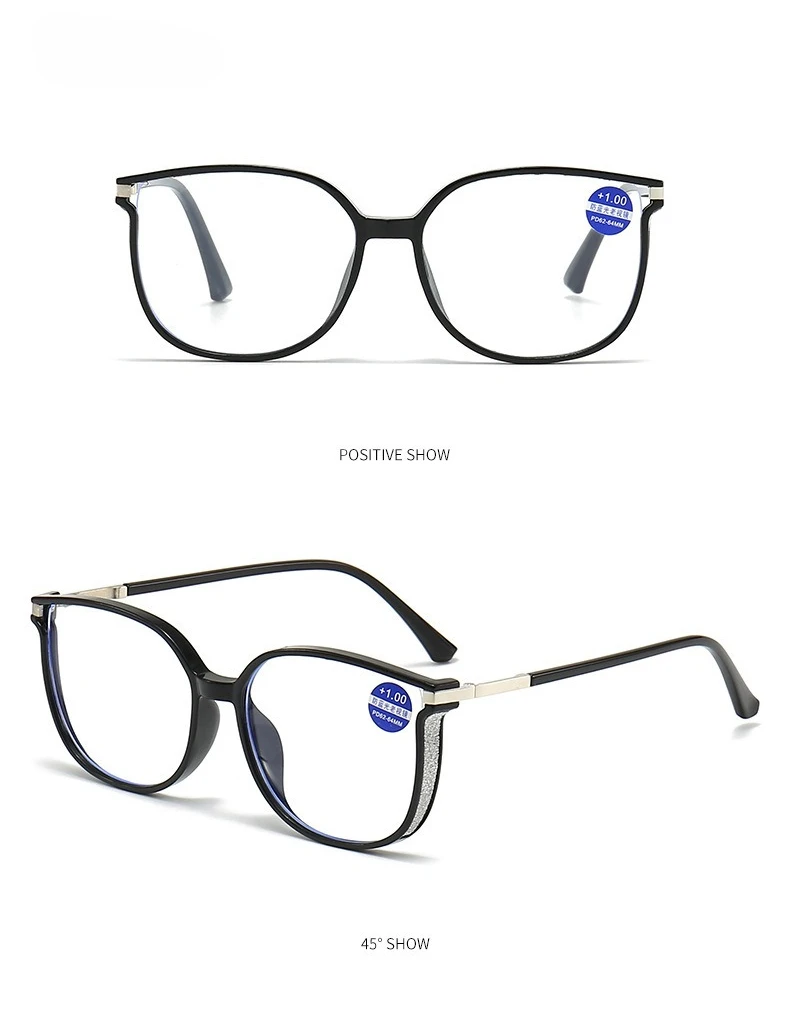 Blue Light Blocking HD Women Reading Glasses Stylish Presbyopic Eyeglasses Plano Eyewear Dazzling Large Frame Set with Diamonds