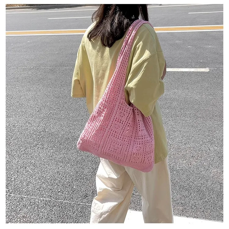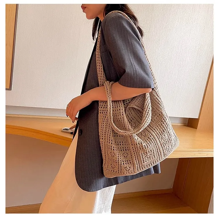 Bohemian Crochet Tote Bag for Women Handwoven Macrame Shoulder Bag with Hollow Knit Design Elegant Christmas Gift for Her, Beach