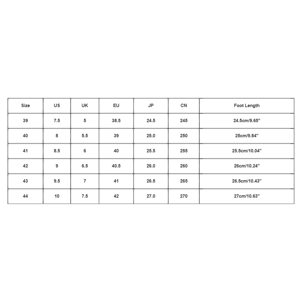 | Size:41 | US:8.5 | UK:6 | EU:40 | JP:25.5 | CN:255 | Foot Length:25.5cm/10.04'' |