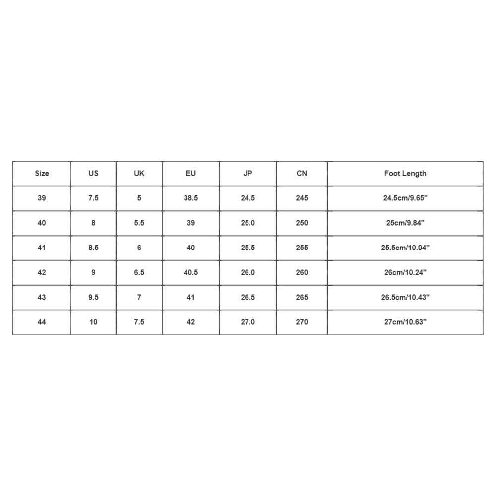 | Size:40 | US:8 | UK:5.5 | EU:39 | JP:25.0 | CN:250 | Foot Length:25cm/9.84'' |