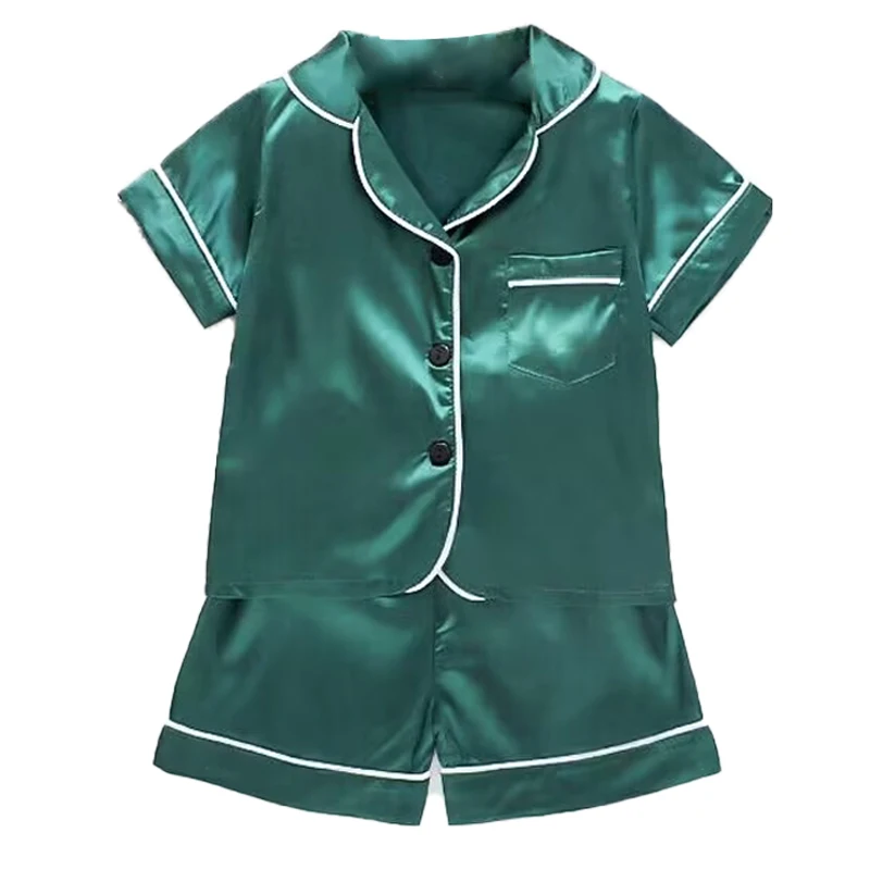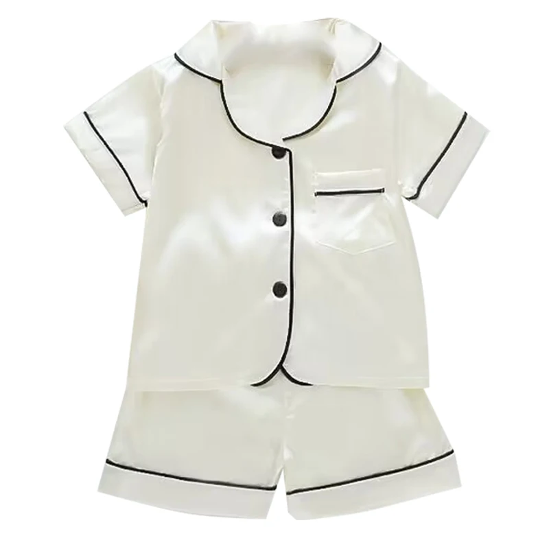 Boys Girls Ice silk satin Cartoon printing Tops Pants Set home Wear Children's pajamas set Baby suit Kids Clothes Toddler