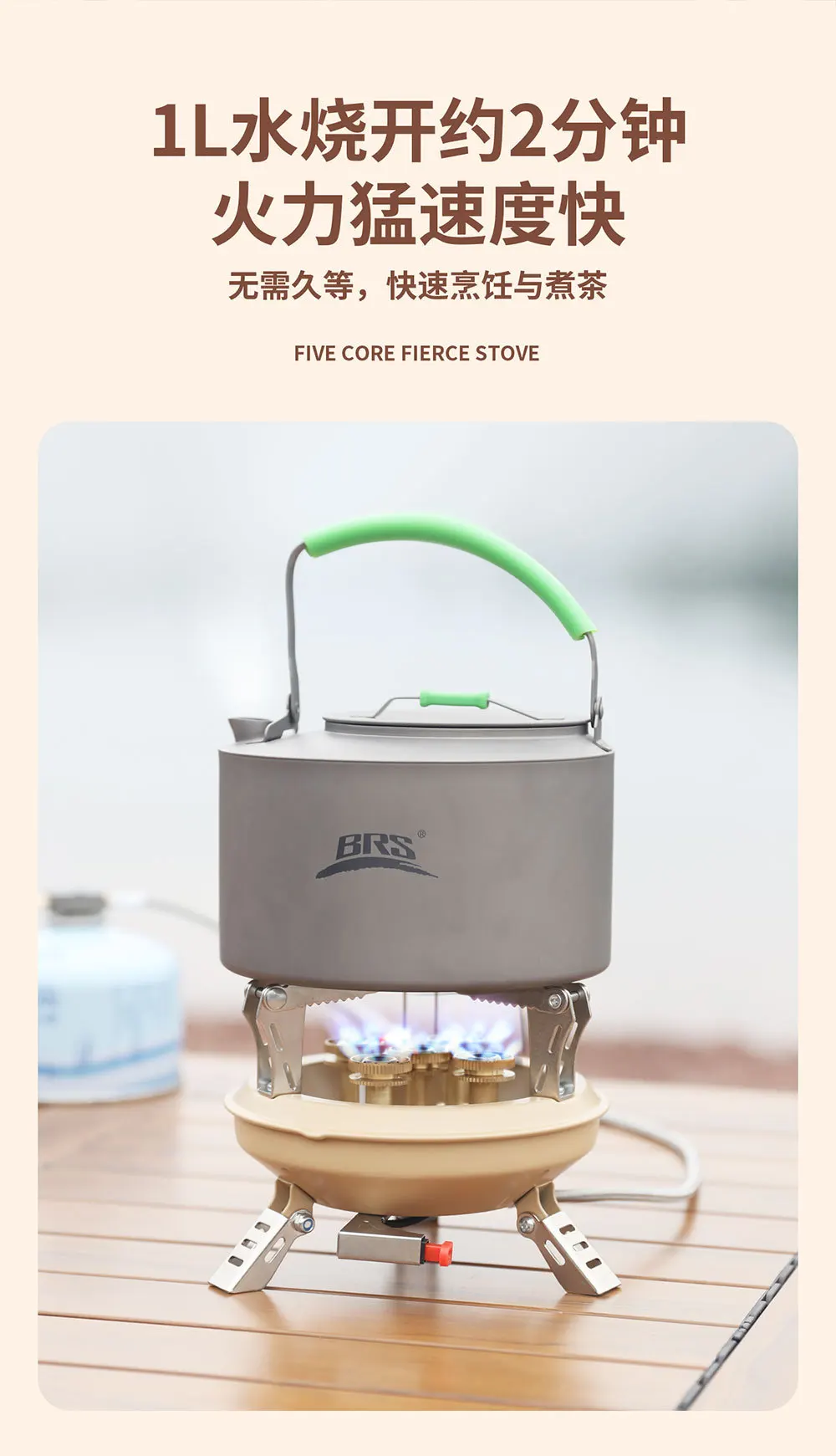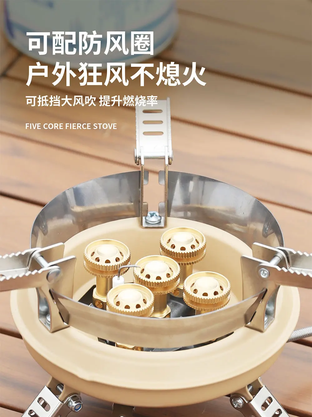 BRS-201A Five-core Fire Stove, Cassette Butane Liquefaction Portable High-power Gas Stove with Electronic Igniter Split Cooktops
