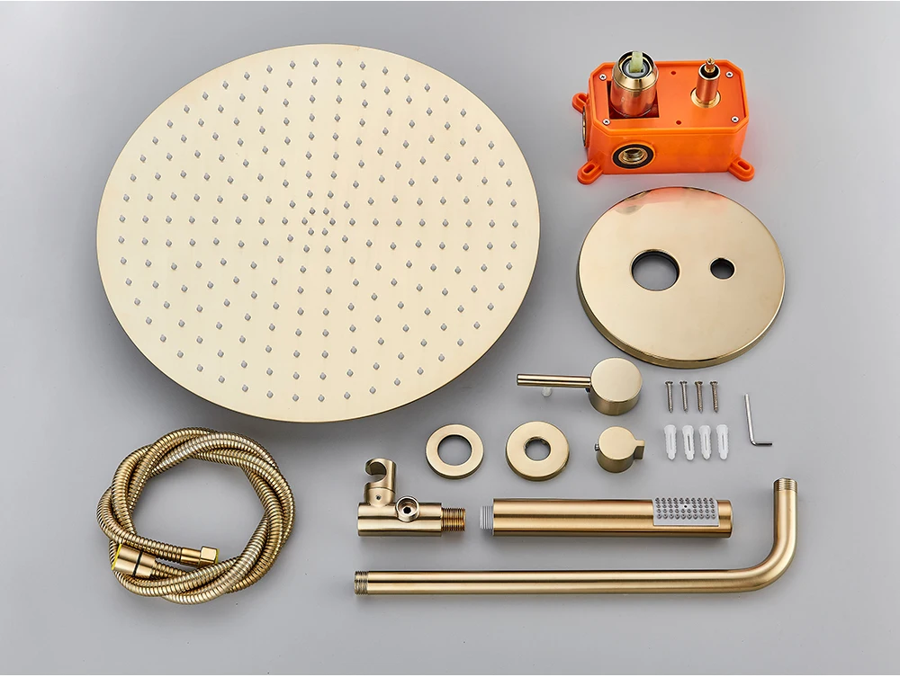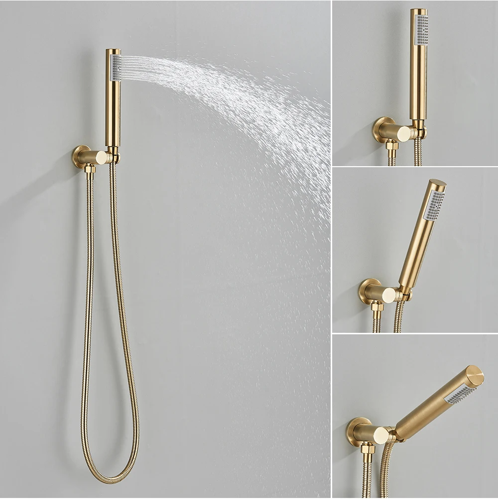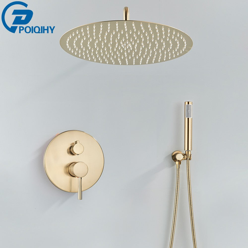 Brushed Gold Shower Faucet Embedded In 2 Ways Shower Mixers Wall Mounted Rainfall Bathroom Shower Tap Stainless Steel Head