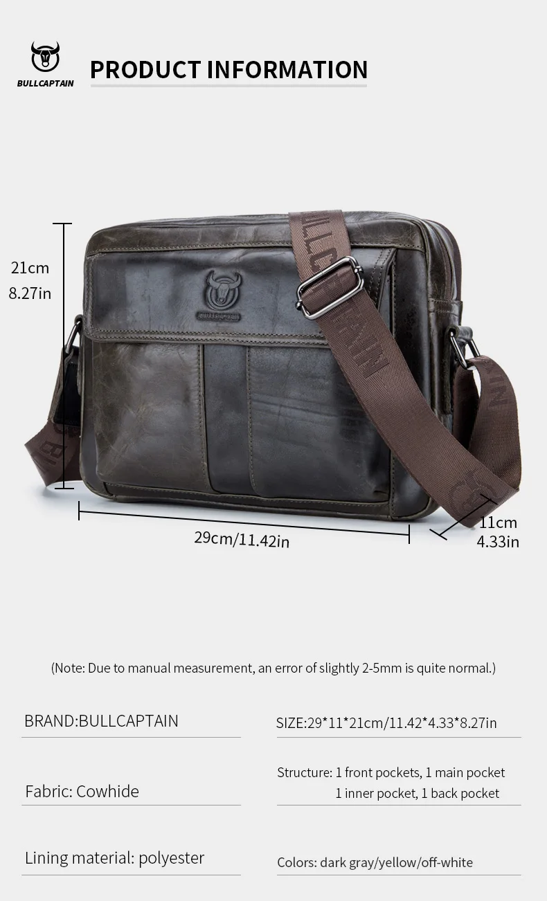 BULLCAPTAIN Genuine Leather Men's Crossbody Bag Large Capacity Casual Multifunctional Handbag A Fashion Business Briefcase
